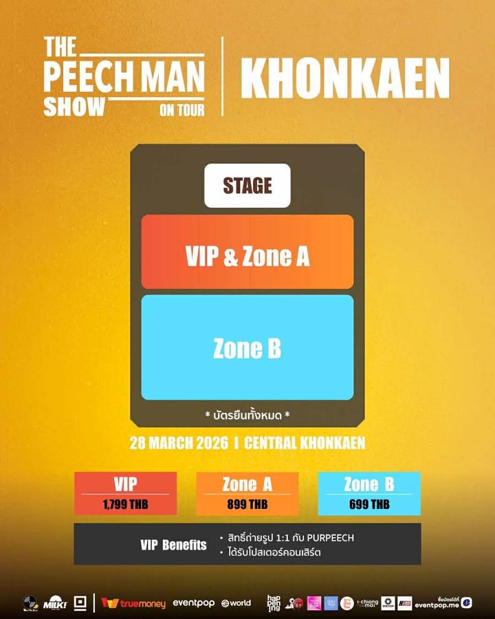 เปิดจำหน่ายบัตรทาง Eventpop หรือ https://www.eventpop.me/s/thepeechmanshowontour