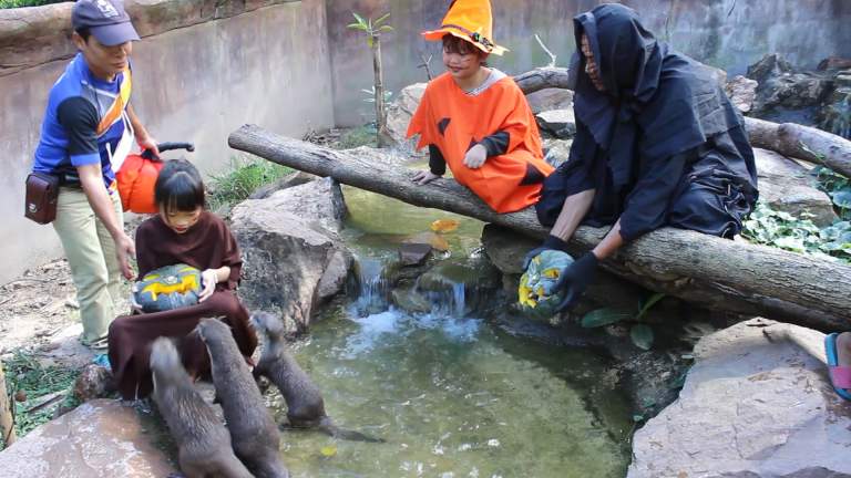 สวนสัตว์ขอนแก่นแต่งชุดผีรับฮาโลวีนให้อาหารสัตว์รับนักท่องเที่ยว