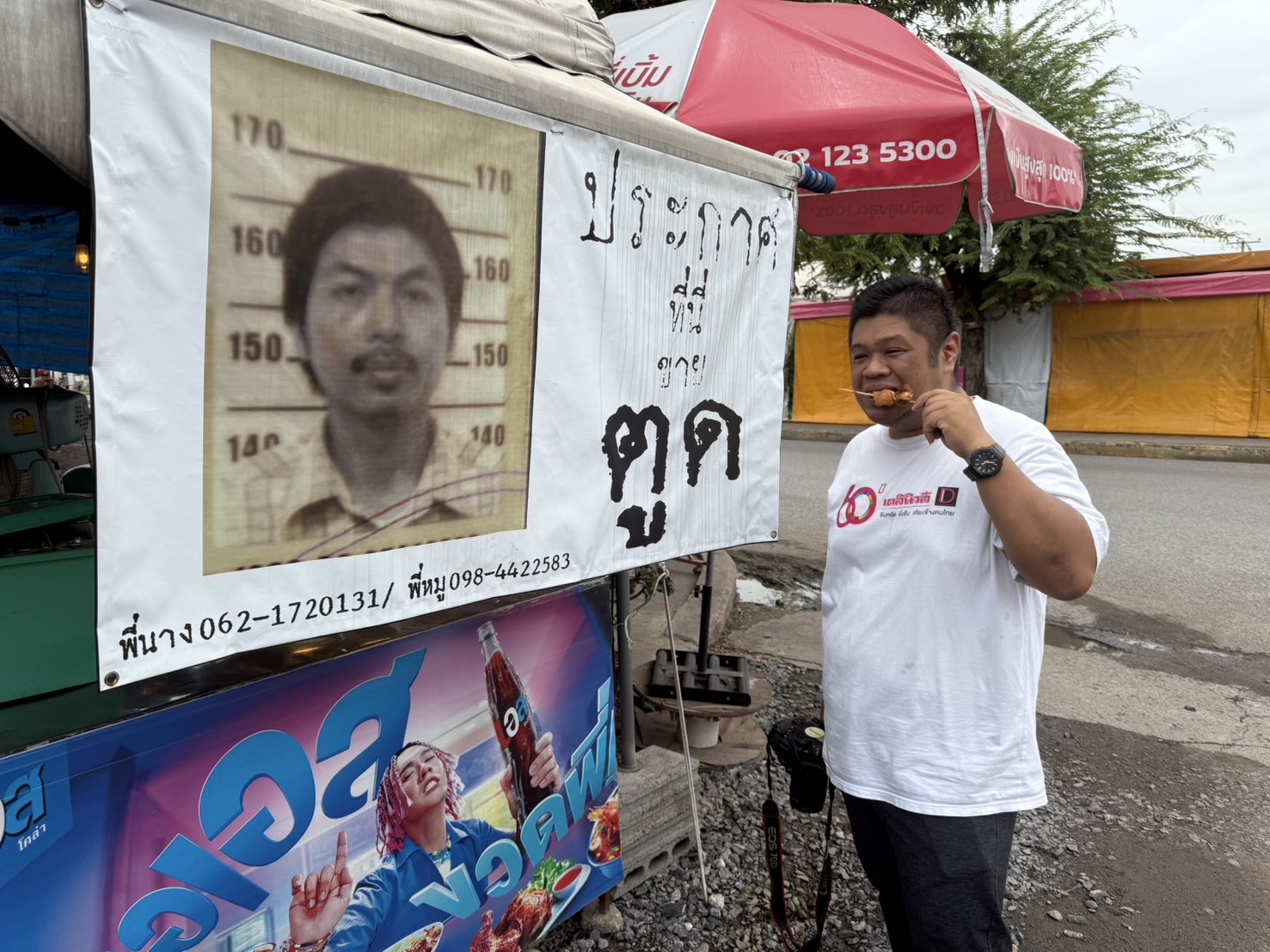 ผู้สื่อข่าวจึงลงพื้นที่ตรวจสอบพบว่าป้ายดังกล่าวติดอยู่บริเวณด้านข้างร้านเฮียโอ๊ตตูดเป็ดทอดประตูเมือง ซึ่งเป็นร้านขายตูดเป็ดทอดมาแล้วกว่า 20 ปี โดยหอมอบอวลไปด้วยกลิ่นเครื่องเทศที่ใช้หมักทอดหอมตลบอบอวนไปทั้งบริเวณและรสชาติที่อร่อยหากินได้ยากในยุคปัจจุบัน ท่ามกลางลูกค้าที่แวะเวียนมาซื้อตูดเป็ดทอดอย่างต่อเนื่อง