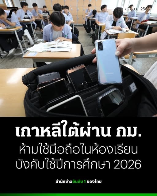 อีกข่าวที่น่าสนใจ คือ เกาหลีใต้ มีกฎหมายห้ามใช้มือถือในห้องเรียน มีผลบังคับใช้ ปีหน้า-2569 ด้วยเหตุผลของการมีสมาธิแห่งการเรียน