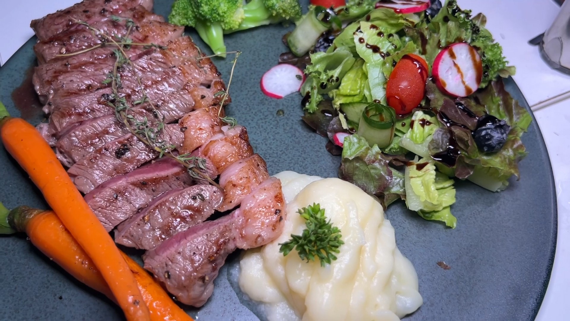 - อาหารจานหลักหลากหลาย ทั้ง สเต็กเนื้อ–หมู, พาสต้าเส้นดำ, หมูกรอบคั่วพริกเกลือ, กระเพราเนื้อน่องลายไข่ลาวา รวมถึง ผักโขมอบชีส หอมกรุ่น
