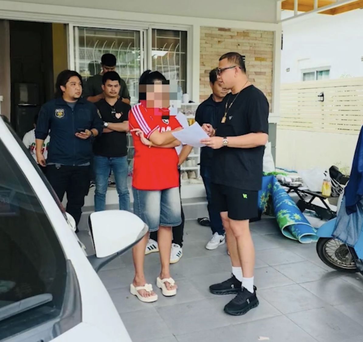 โดยเมื่อวันที่ 12 กันยายน 2568 เจ้าหน้าที่ตำรวจสืบทราบจนพบว่า ผู้ต้องหาตามหมายจับของศาล มีความเคลื่อนไหวที่หมู่บ้านแห่งหนึ่ง ในพื้นที่ต.คลองตำหรุ อ.เมืองชลบุรี จ.ชลบุรี เจ้าหน้าที่ตำรวจนำหมายจับของศาล เดินทางไปตรวจสอบที่หมู่บ้านดังกล่าว ก็พบตัว น.ส.มณฑาทิพย์ โอสวัสดิ์ อายุ 26 ปี จึงแสดงหมายจับ เข้าจับกุมตัว ในการสอบสวนเบื้องต้น น.ส.มณฑาทิพย์ฯ ให้การว่าบ้านพักหลังดังกล่าว ได้เช่าไว้เป็นที่หลบซ่อนตัวและเป็นที่จัดการเรื่องเงินสด โดยได้รับการว่าจ้างจากชาวจีน ชื่อนายเกอ เก้อ อาศัยอยู่ที่เมืองบ่อแก้ว ประเทศลาว ให้ทำหน้าที่จัดหาบัญชีและถอนเงินออกจากบัญชี โดยจะได้รับค่าตอบแทนบัญชีละ 20,000 บาท เมื่อทำการถอนเงินแล้วจะทำการฝากเข้าบัญชีธนาคารและบัญชีทรูมันนี่ วอลเลท ซึ่งนายเกอ เก้อ จะเป็นผู้แจ้งว่ากดเงินบัญชีไหน ฝากเข้าบัญชีไหน ผ่านทางแอพพลิเคชั่น WhatsApp ชื่อบัญชี LOS
