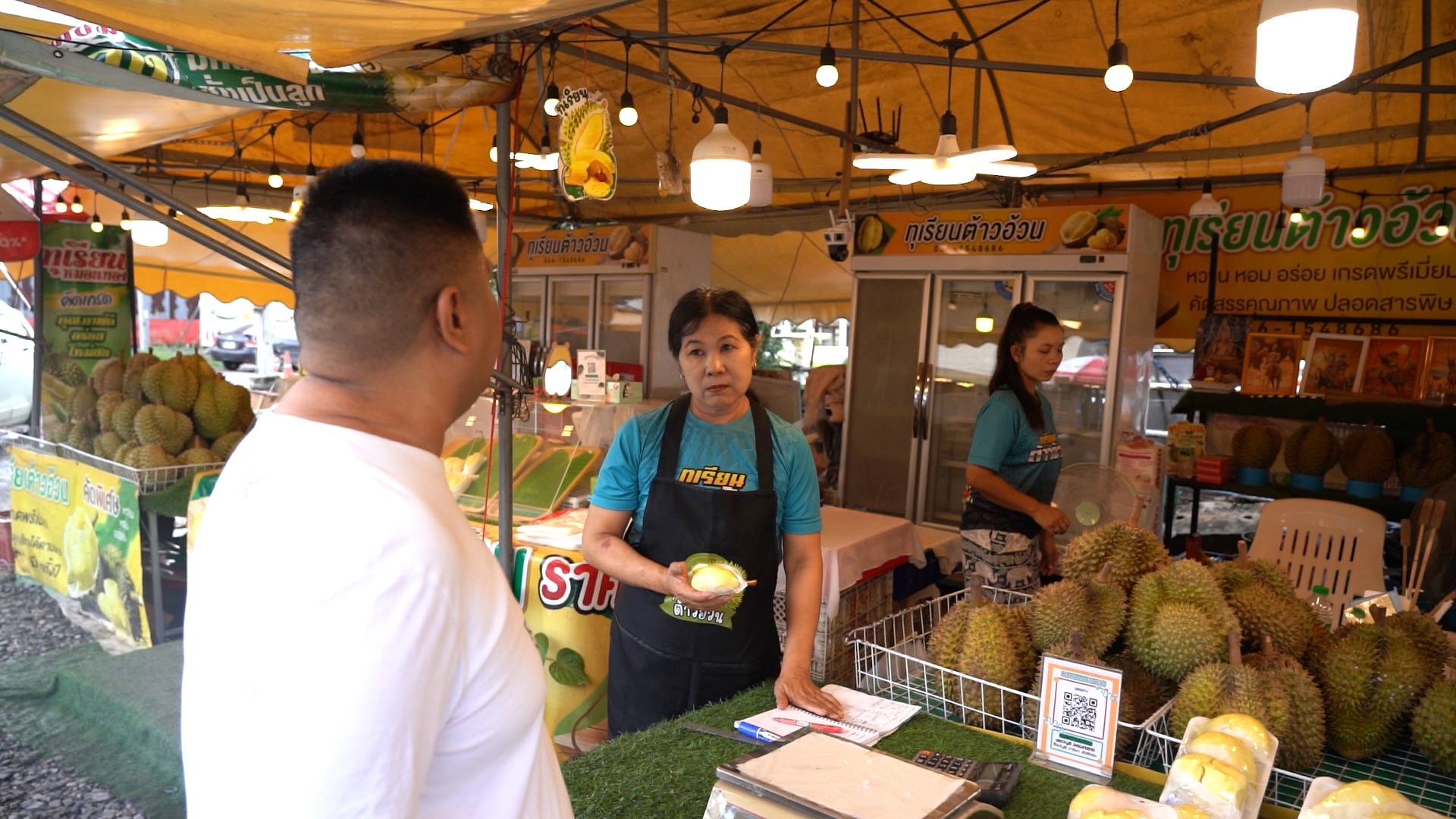 นางสมหมาย ปาณะศรี อายุ 55 ปี เจ้าของร้านทุเรียน “ต่าวอ้วน” กล่าวว่า ลูกค้าโอนเงินราว 70-80% ต่อวัน มีเงินสดน้อยมาก หากบอกว่าไม่รับการโอน จะกระทบยอดขายมาก จึงจำเป็นต้องเสี่ยงรับโอนแม้รู้ตัวว่าอาจเกี่ยวข้องกับบัญชีม้าได้ แต่ยืนยันว่า “ทำด้วยความบริสุทธิ์ใจ”