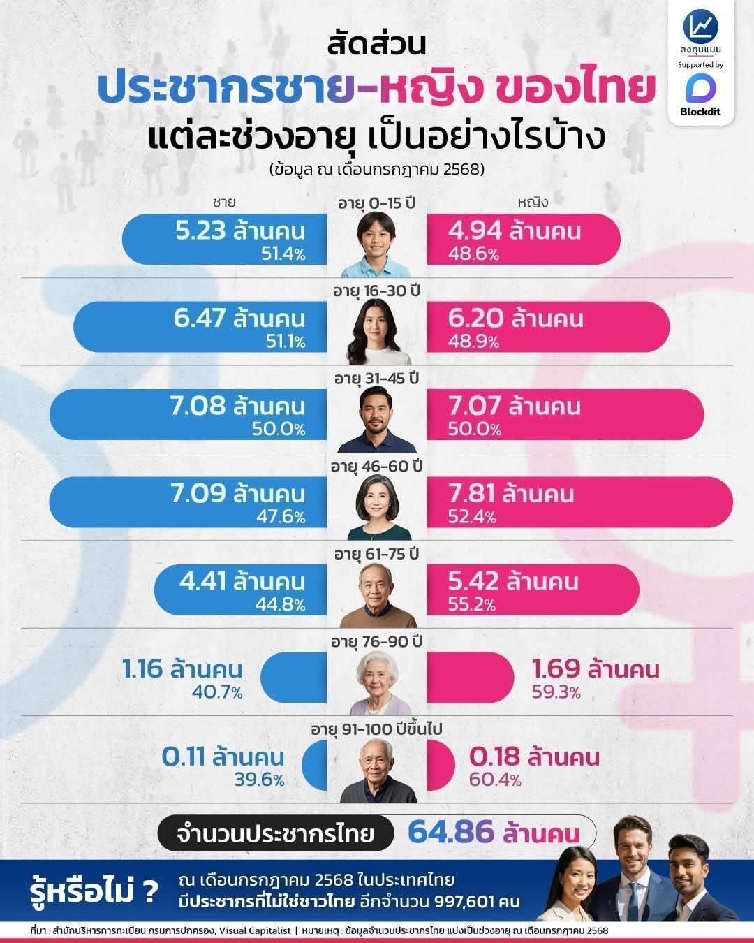 ส่องสถิติ วัยของประชากรไทยน่าใจหาย ที่บ้านเรามีวัยทำงานน้อยลง และน้อยกว่า กลุ่มสูงวัย–มีอายุตั้งแต่ 60 ขึ้นไป