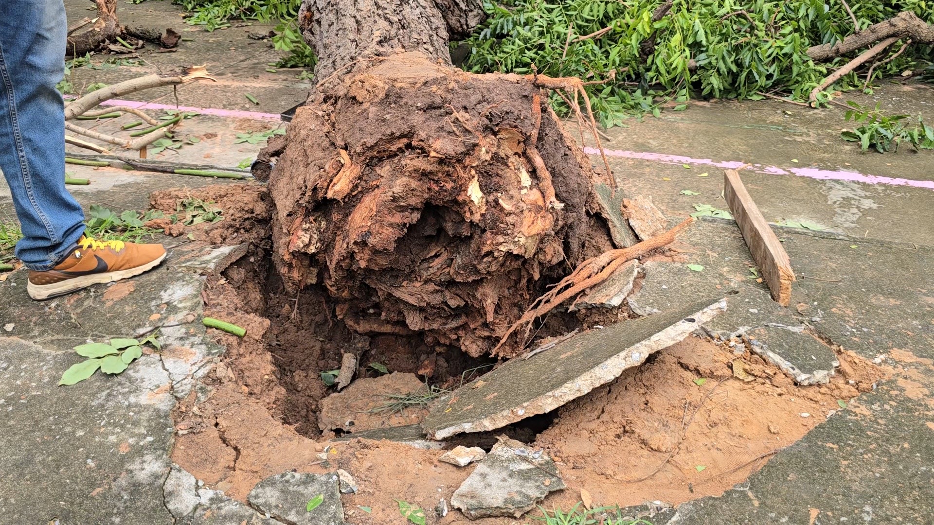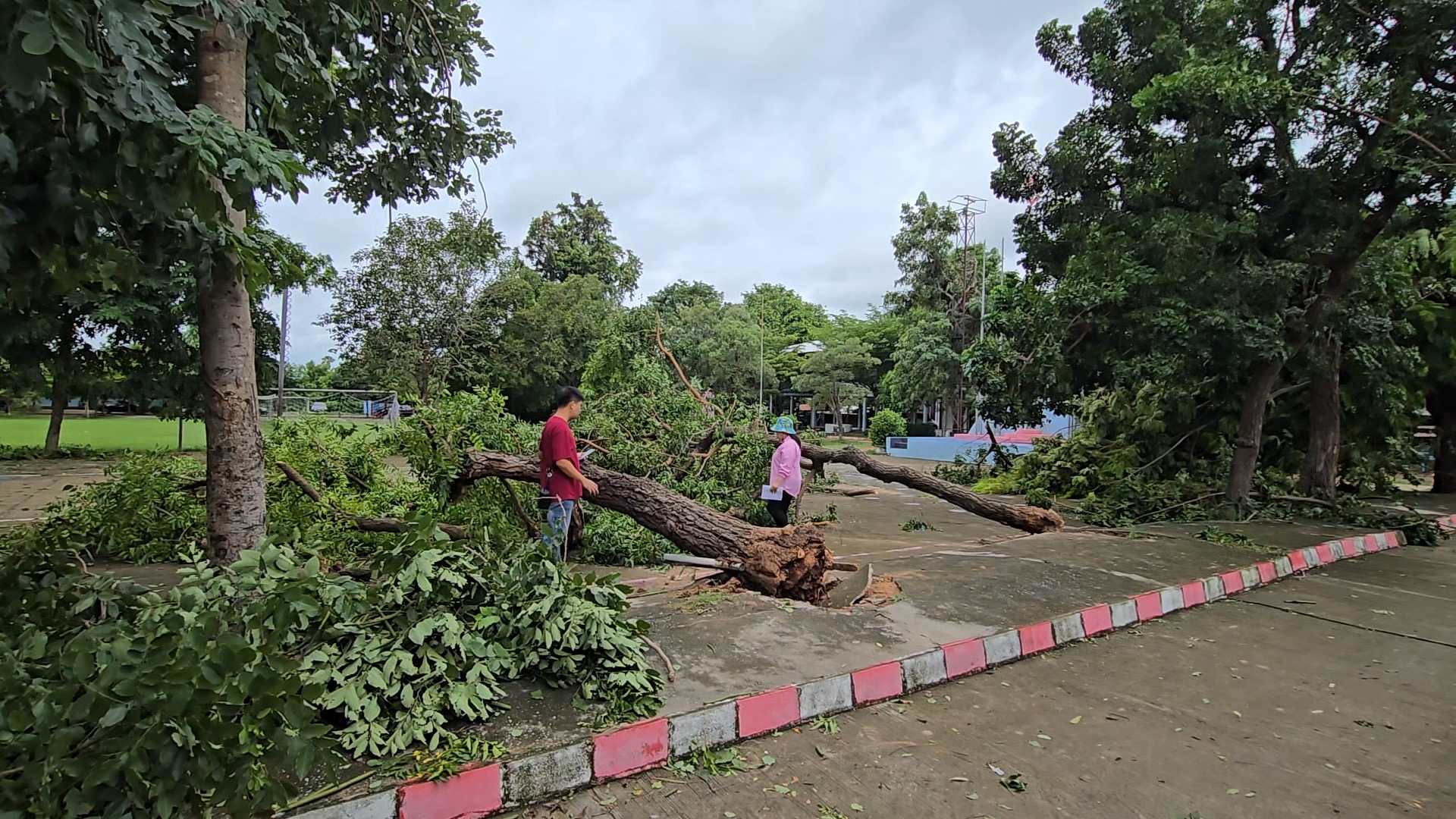 พายุบัวลอยพัดหลังคาบ้านหาย ต้นไม้-ต้นค้างคาวในโรงเรียนอายุเก่าแก่ถูกฟ้าผ่า โชคดีครู-นักเรียนปลอดภัย