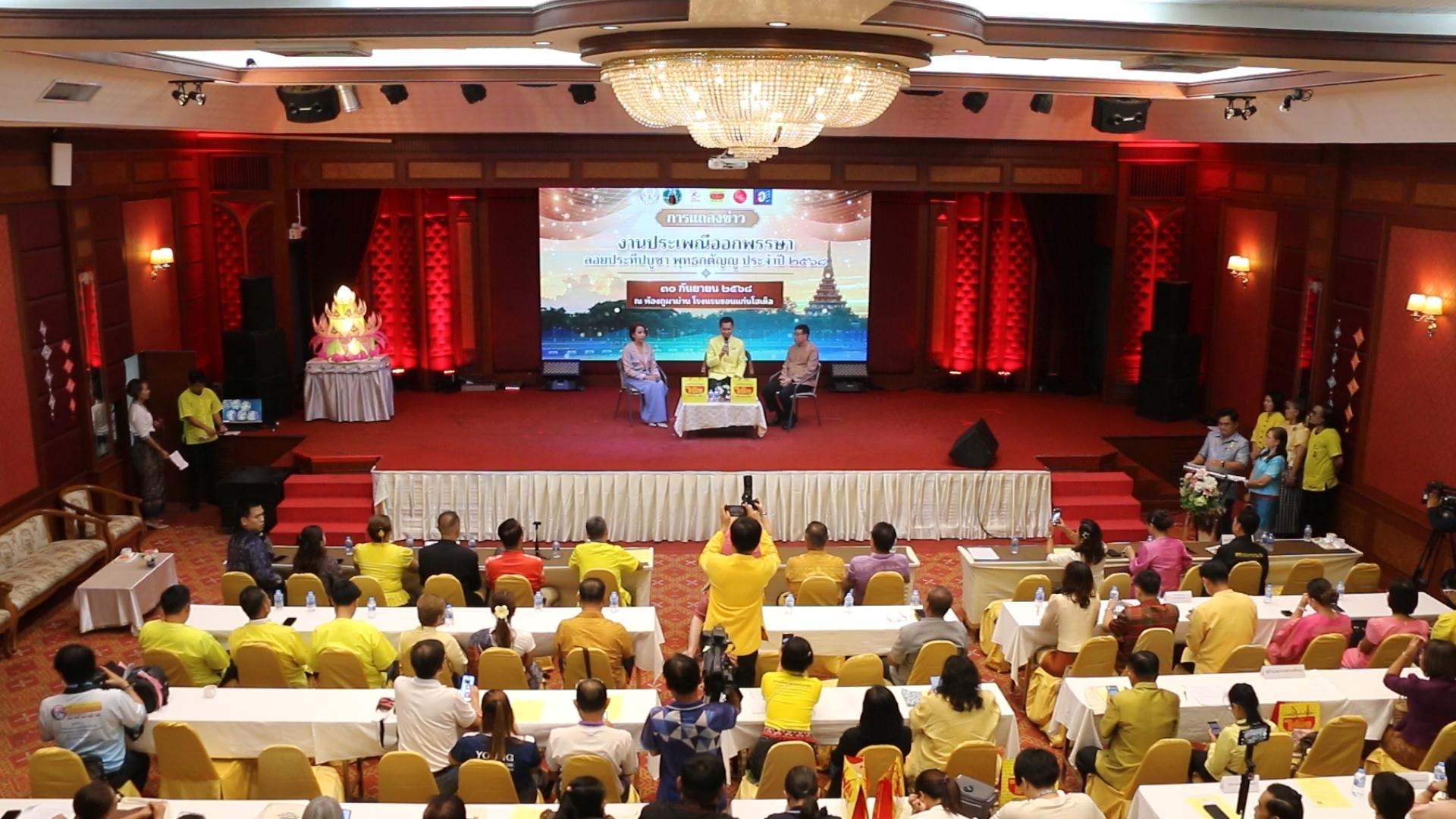 เมื่อเวลา 11.00 น. วันที่ 30 กันยายน 2568 ที่โรงแรมขอนแก่นโฮเต็ล เขตเทศบาลนครขอนแก่น นายพันธ์เทพ เสาโกศล รองผู้ว่าราชการจังหวัดขอนแก่น พร้อมด้วย นายประสิทธิ์ ทองแท่งไทย นายกเทศมนตรีนครขอนแก่น ร่วมหารือแถลงข่าวการจัดงาน ประเพณีออกพรรษา ลอยประทีปบูชา พุทธกตัญญู ประจำปี 2568 ซึ่งเทศบาลนครขอนแก่นร่วมกับการท่องเที่ยวแห่งประเทศไทย และหน่วยงานทั้งภาครัฐและเอกชน กำหนดจัดขึ้น ณ บึงแก่นนคร ระหว่างวันที่ 5–8 ตุลาคม 2568