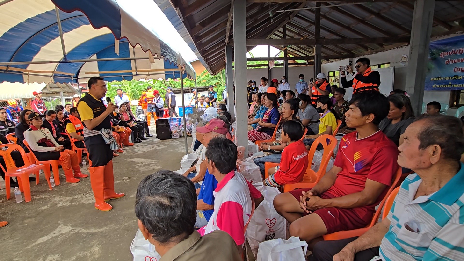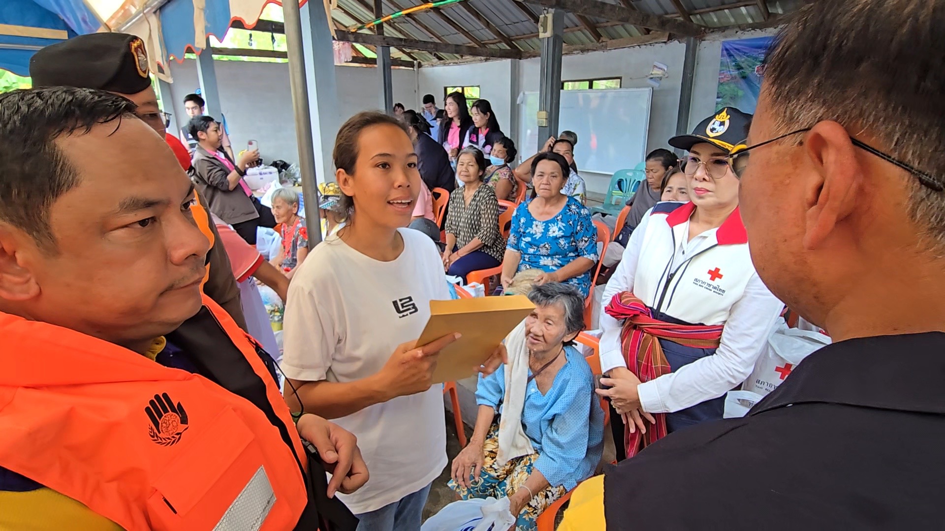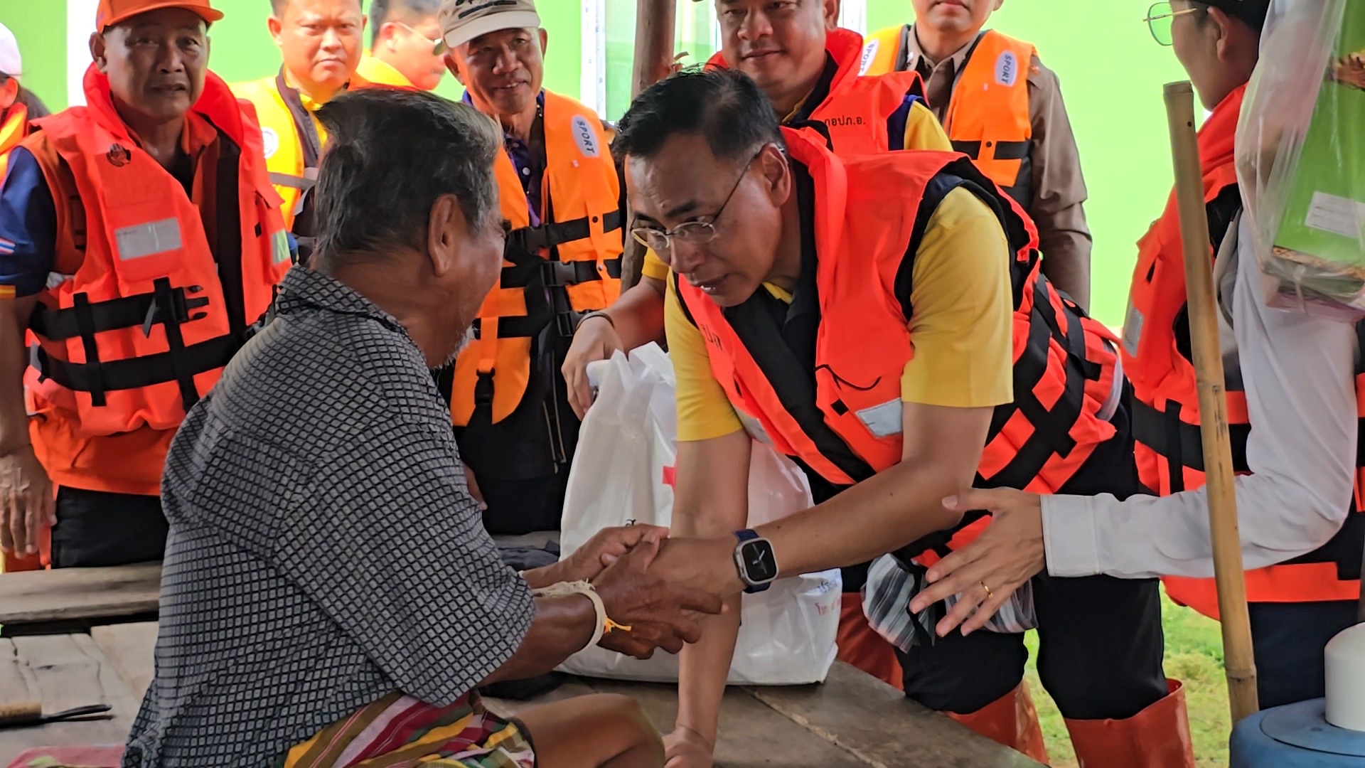 เมื่อเวลา 15.00 น. วันที่ 7 ตุลาคม 2568 นายชรินทร์ ทองสุข ผู้ว่าราชการจังหวัดขอนแก่น พร้อมนางสินีนาถ ทองสุข นายกเหล่ากาชาดจังหวัดขอนแก่น และหน่วยงานที่เกี่ยวข้อง ลงพื้นที่เยี่ยมและมอบถุงยังชีพให้ชาวบ้านที่ ชุมชนโนนหนองลาด บ้านโนนเชือก หมู่ 7 ตำบลบ้านขาม อำเภอน้ำพอง จังหวัดขอนแก่น ซึ่งเป็นชุมชนที่ถูกน้ำท่วมขังตั้งแต่ 28 กันยายน จนถึงขณะนี้น้ำยังไม่ลด ชาวบ้าน 52 ครอบครัวต้องสัญจรด้วยเรือเท่านั้น เพราะระดับน้ำท่วมนั้นสูงกว่า 2 เมตร