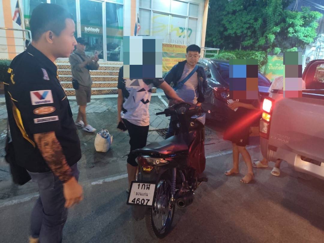 ตามพฤติการณ์ เมื่อวันที่ 11 ตุลาคม 2568 ผู้เสียหายแจ้งว่าได้จอดรถไว้ข้างร้าน “เพลงพิณ” ริมบึงแก่นนครแล้วถูกลัก ขณะที่ชุดสืบสวนสืบสวนพบเบาะแสว่า ผู้ก่อเหตุเป็นกลุ่มเยาวชนในหมู่บ้านมั่นคง ซอยเมตตา ตำบลในเมือง จึงติดตามจนพบกลุ่มวัยรุ่นชายใช้จักรยานยนต์ต้องสงสัยซึ่งลักษณะตรงกับพาหนะที่ใช้ก่อเหตุ
