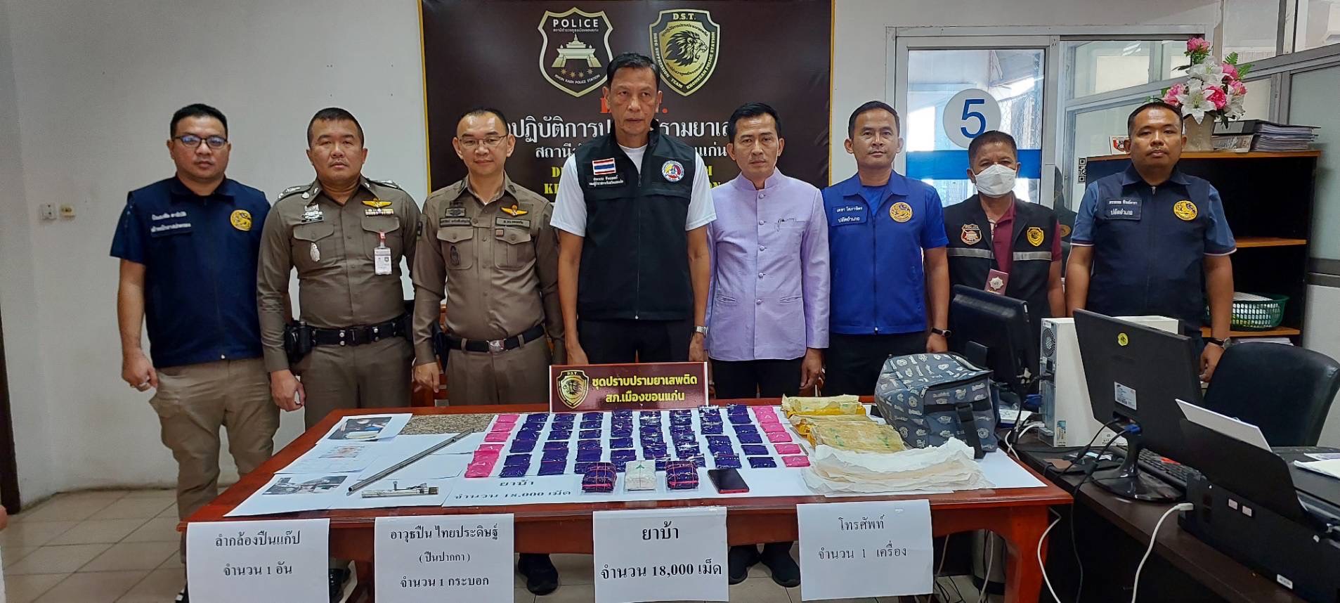ขอนแก่นปิดล้อมตรวจค้น กวาดล้างยาเสพติดใจกลางเมือง ยึดยาบ้า 18,000 เม็ด อาวุธปืนปากกา 1 กระบอก ผู้ต้องหา 6 ราย “ประจวบ” สั่งเดินหน้าจับทุกวันไม่มีวันหยุด