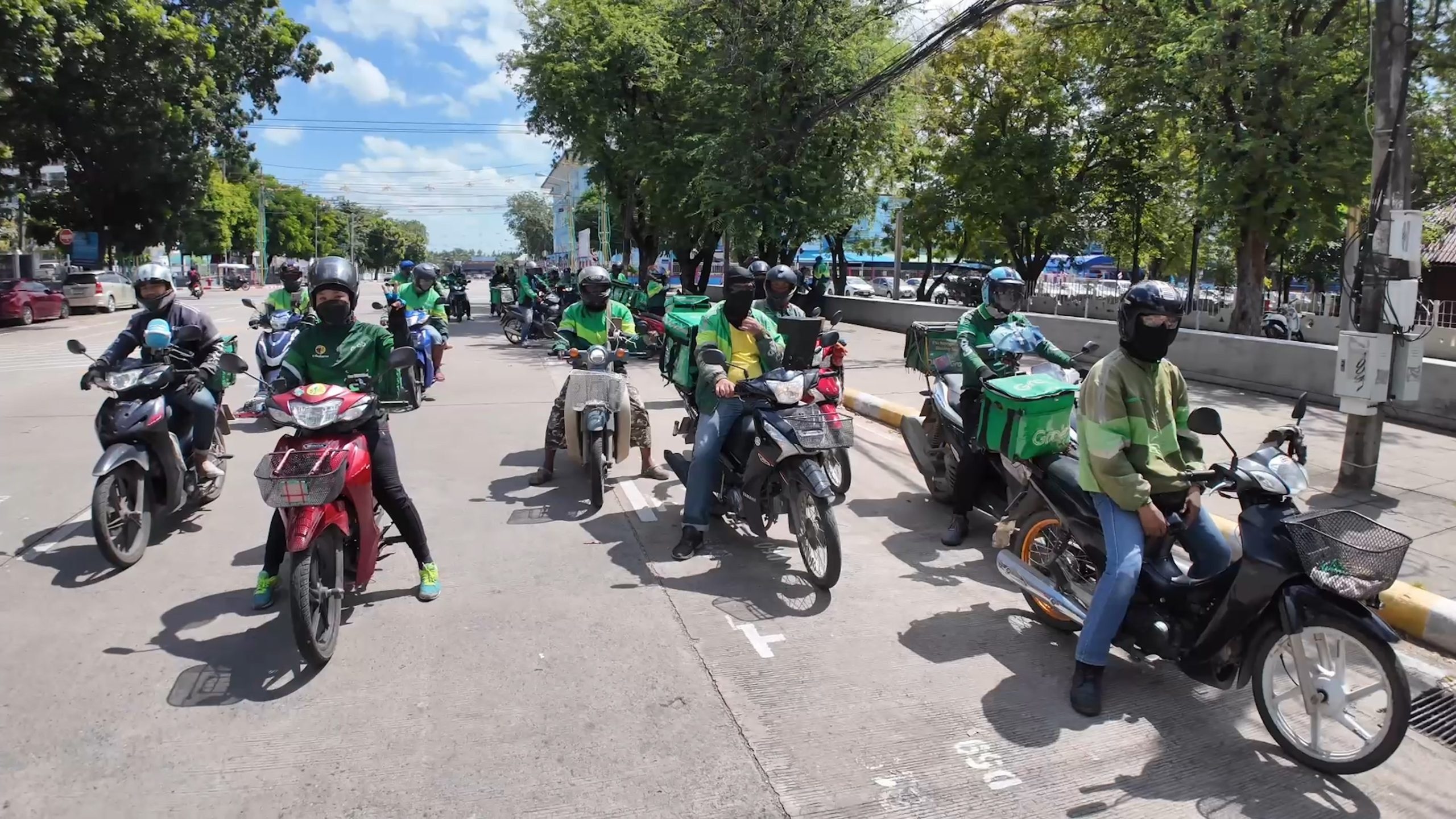 เมื่อ19 ต.ค. 2568 เวลาประมาณ 11.00 น. ที่บริเวณ สวนรัชดานุสรณ์ เขตเทศบาลนครขอนแก่น ต.ในเมือง อ.เมือง จ.ขอนแก่น กลุ่มไรเดอร์รับส่งอาหารเดลิเวอรี่ของค่ายดัง (Grab) นัดรวมตัวสไตรค์งานในลักษณะสัญลักษณ์ โดยขี่รถจักรยานยนต์พร้อมบีบแตรเรียกเพื่อนร่วมอาชีพเข้าร่วม เพื่อประท้วงการที่ค่ารอบวิ่งรับ‑ส่งอาหารลดลงอย่างต่อเนื่อง เหลือเพียงราว 21 บาท ซึ่งกลุ่มไรเดอร์ร้องว่าไม่สอดคล้องกับต้นทุนที่เพิ่มขึ้น รวมถึงเตรียมยกระดับการเคลื่อนไหวหากไม่มีการปรับแก้ตามข้อเรียกร้อง