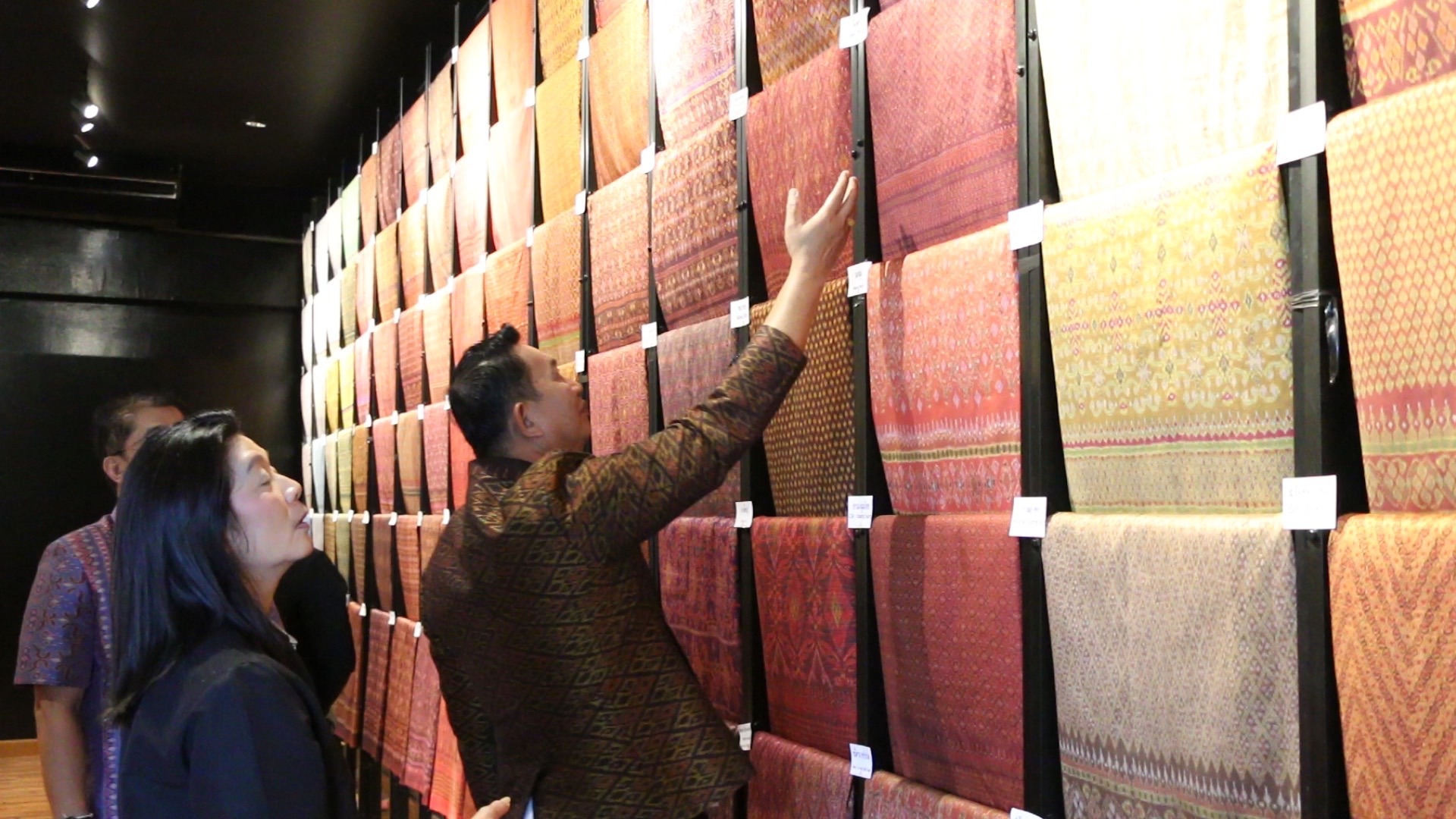 นายลำปางเพ็ชร์ กล่าวต่อว่า สมเด็จพระนางเจ้าสิริกิติ์ พระบรมราชินีนาถ พระบรมราชชนนีพันปีหลวง เคยเสด็จฯ มายังอำเภอชนบท จังหวัดขอนแก่น และทรงมีพระดำรัสว่า “ผ้าไหมมัดหมี่เป็นผ้าที่ทรงคุณค่า” หลังจากนั้นทางศาลาไหมไทยได้เก็บรวบรวมผ้าไหมจากการฝึกสอนชาวบ้านด้านการย้อม การทอ และการออกแบบลวดลายผ้าไหม ซึ่งล้วนเป็นภูมิปัญญาดั้งเดิม ถ่ายทอดสู่กำแพงผ้าไหมมัดหมี่ที่ยาวที่สุดในประเทศไทย