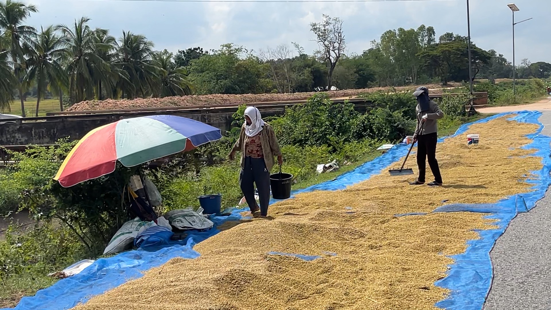 “ถ้าหน่วยงาน อบต. หรือหน่วยงานไหนหาพื้นที่ตากข้าวให้ชาวบ้านได้จะดีมาก แต่จนถึงวันนี้ก็ไม่เห็นมีหน่วยงานไหนมาหาให้ เพราะถ้าจัดหาให้ในพื้นที่ปลอดภัยเชื่อว่าเกษตรกรก็จะเอาข้าวไปตาก ดังนั้นจึงตัดสินใจนำข้าวมาตากบนถนนแบบนี้ปีละประมาณ 1 เดือน ซึ่งก็เห็นใจผู้ใช้รถใช้ถนนเหมือนกันแต่ชาวนาไม่มีที่ตากข้าวจริงๆ อย่างไรก็ อยากให้รัฐบาลช่วยผลักดันราคาข้าวให้สูงกว่านี้อย่างน้อยให้ได้เท่าปีที่แล้วก็ยังดี”