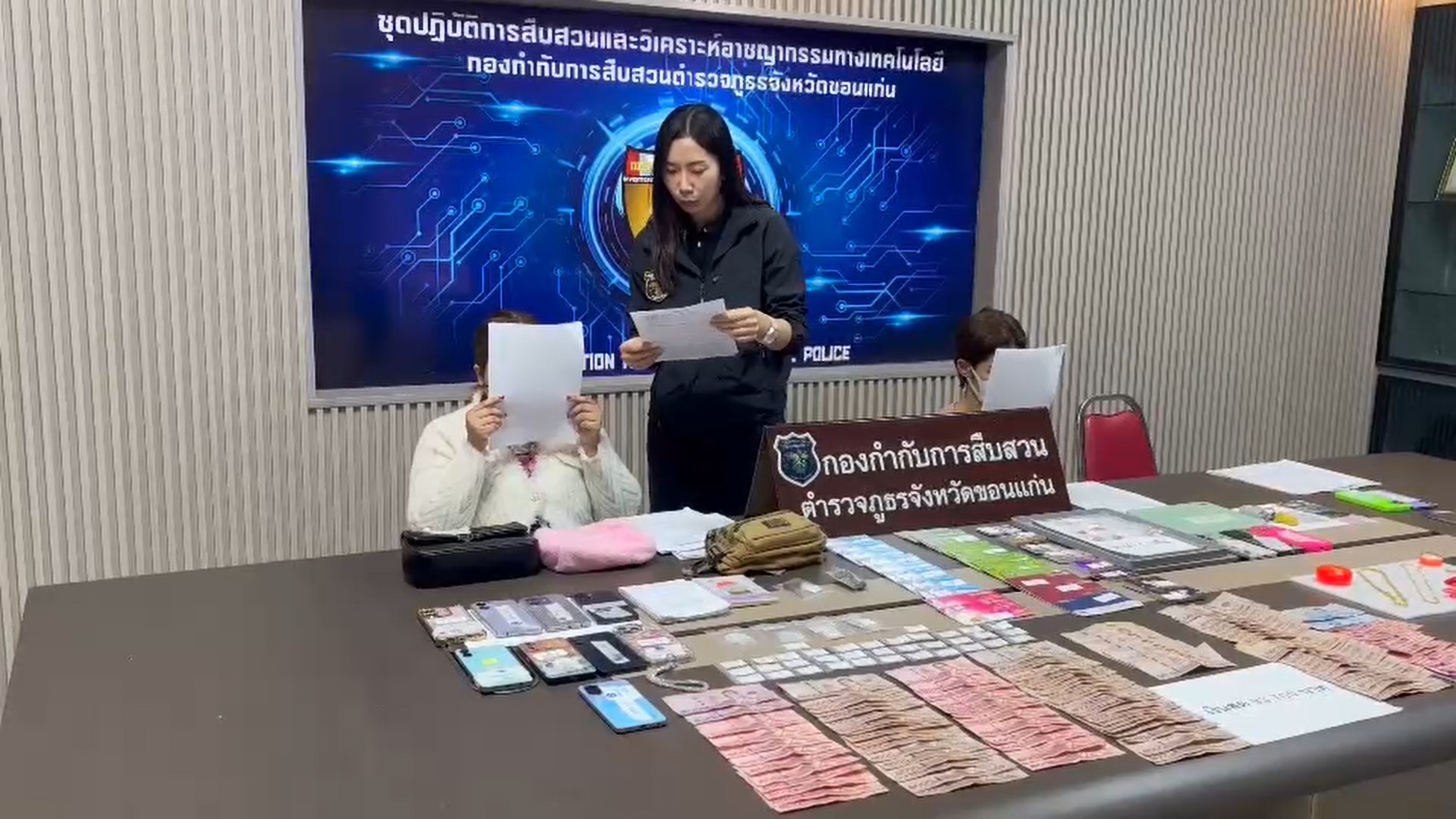 ตำรวจสืบสวนและชุดวิเคราะห์อาชญากรรมทางเทคโนโลยี ตำรวจภูธรจังหวัดขอนแก่น เปิดปฏิบัติการทลายเครือข่ายบัญชีม้าและระบบการเงินของแก๊งคอลเซ็นเตอร์ จับผู้ต้องหา 4 คน ยึดสมุดบัญชี บัตรเอทีเอ็ม และทรัพย์สินจำนวนมาก รวมถึงยาเสพติด พร้อมขยายผลเครือข่ายเปิดบัญชีม้าและผู้กดเงินให้ขบวนการออนไลน์