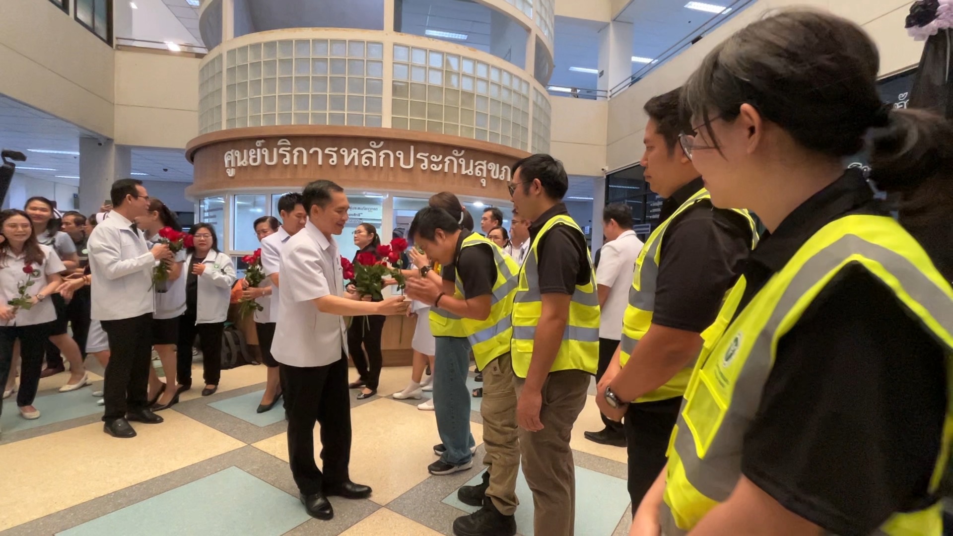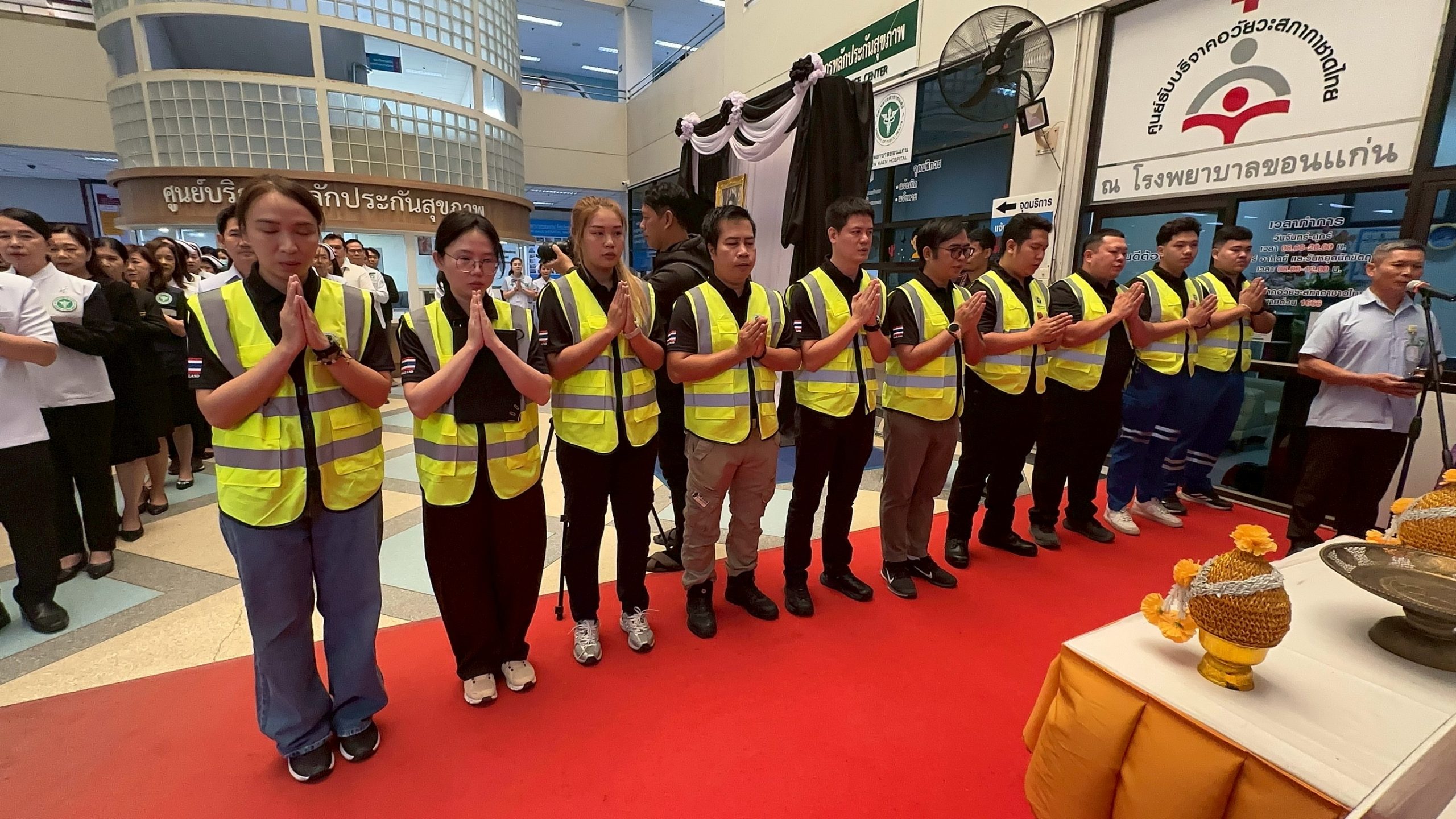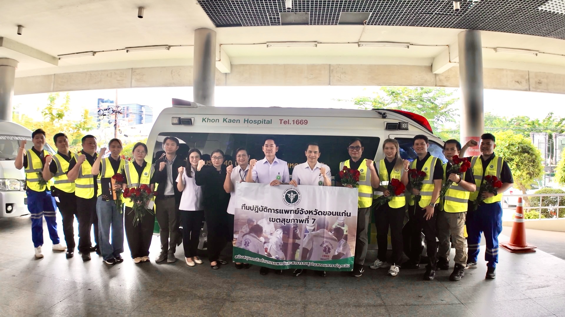 เมื่อเวลา 09.09 น. ที่บริเวณชั้น 1 อาคารสิรินธร รพ.ขอนแก่น นพ.ภาคี ทรัพย์พิพัฒน์ สาธารณสุขนิเทศก์ เขตสุขภาพที่ 7 พร้อมด้วย นพ.ธนสิทธิ์ ไพรพงษ์ ผอ.รพ.ขอนแก่น นำคณะผู้บริหารเขตสุขภาพที่ 7, คณะผู้บริหาร รพ.ขอนแก่น และบุคลากรของ รพ.ขอนแก่น ร่วมให้กำลังใจและพบปะพูดคุยกับทีมแพทย์ฉุกเฉินตอบโต้ภัยพิบัติ หรือ Emergency Medical Team หรือ EMT (MERT/Mini MERT) จำนวน 10 คน ที่มีกำหนดออกเดินทางไปปฏิบัติการช่วยเหลือประชาชนจากเหตุสถานการณ์อันตรายจากการสู้รบตามแนวชายแดนไทย-กัมพูชา