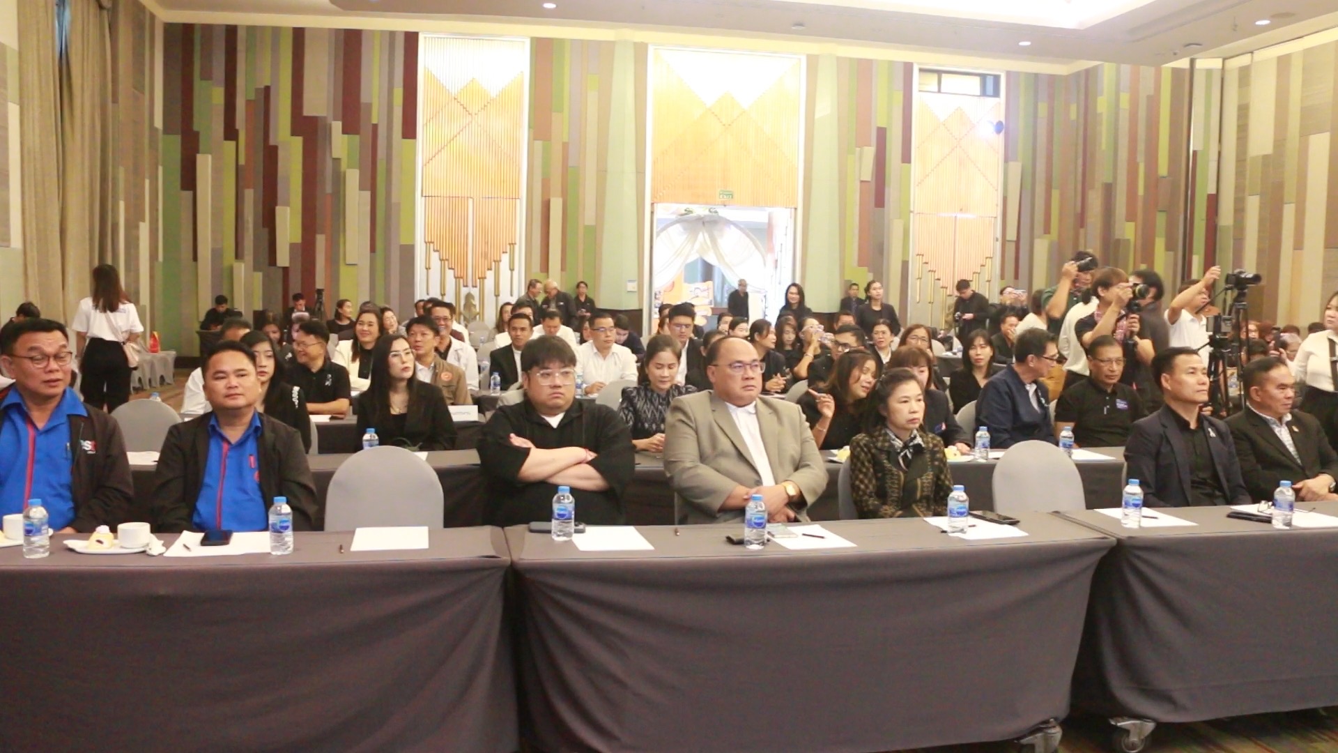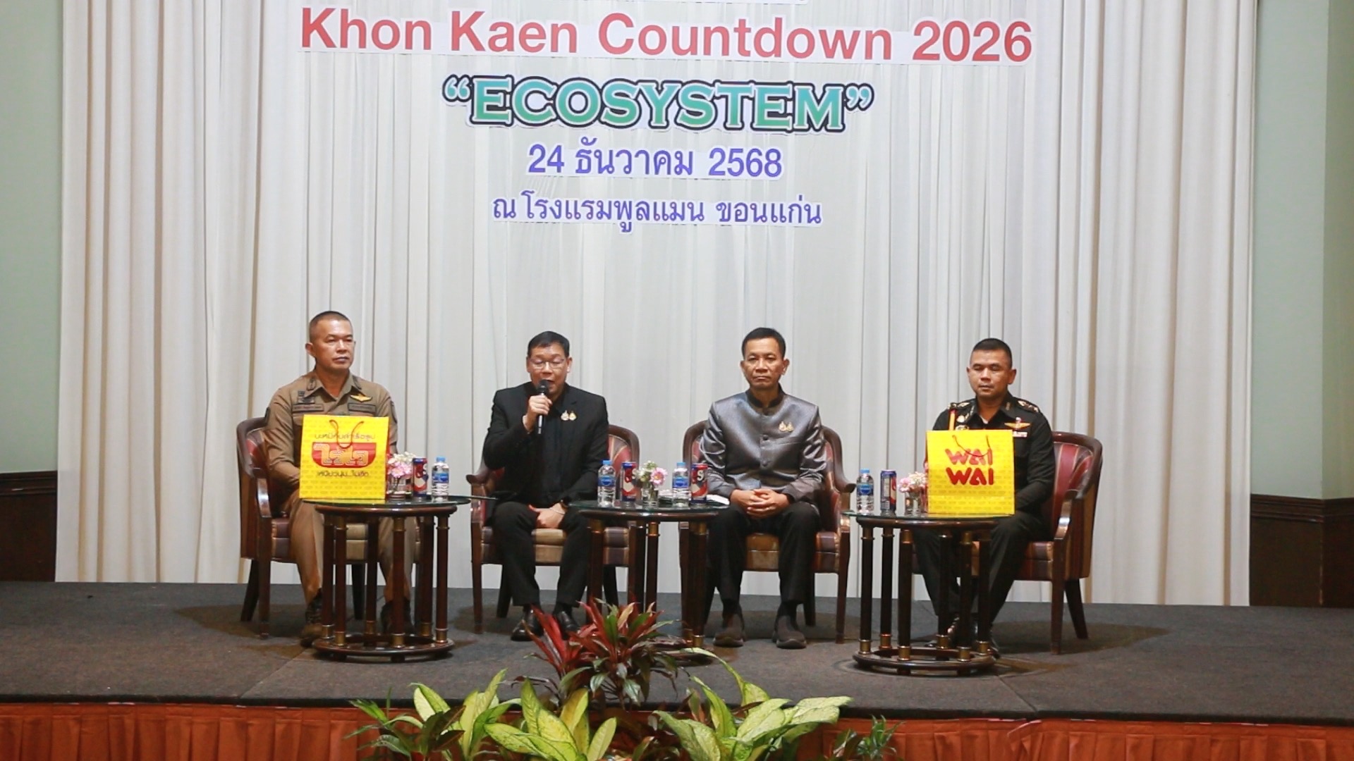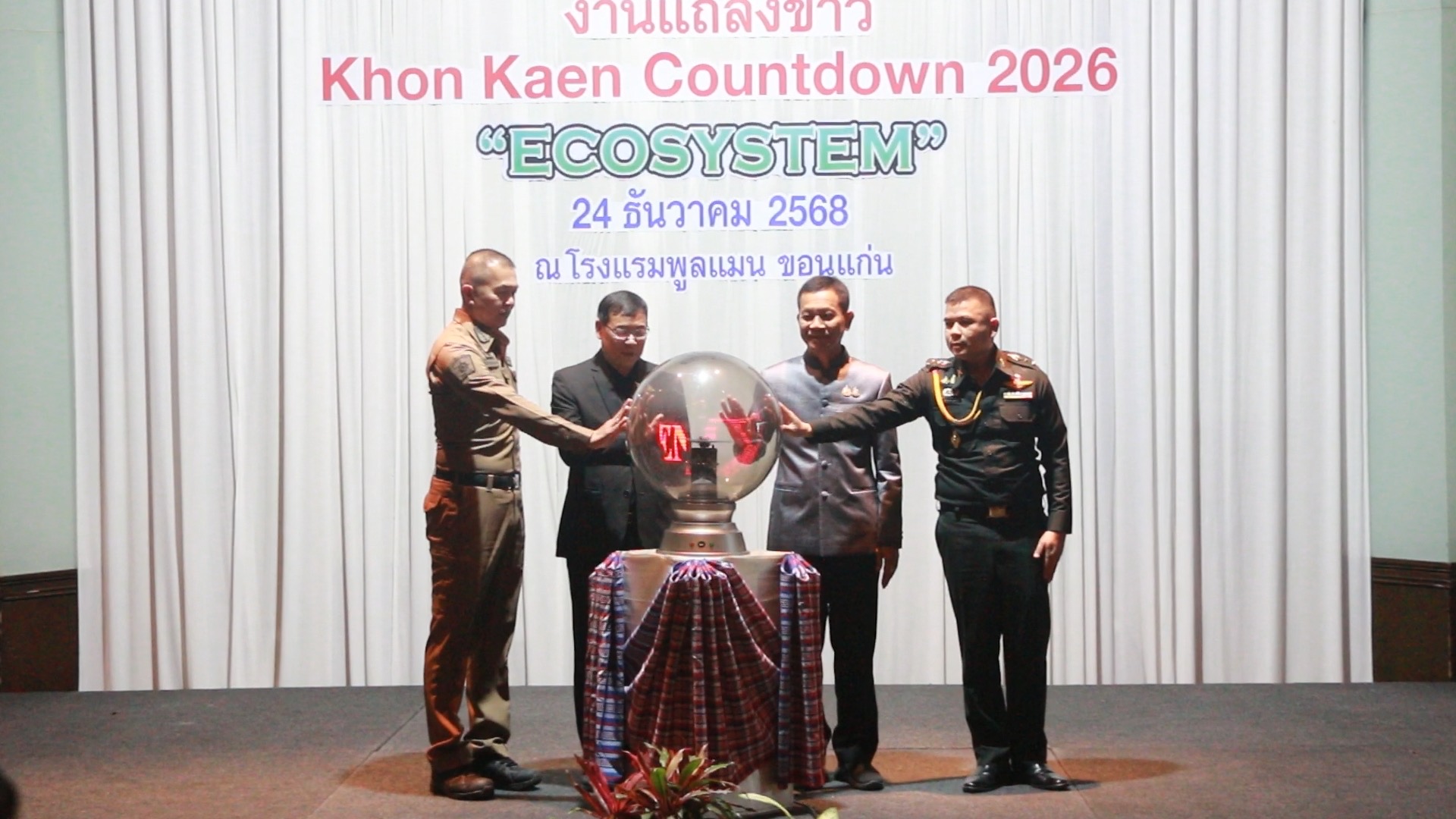 เมื่อเวลา 11.00 น. วันที่ 24 ธ.ค.2568 ที่โรงแรมพูลแมน ขอนแก่น ราชาออคิด นายพันธ์เทพ เสาโกศล รอง ผวจ.ขอนแก่น พร้อมด้วยนายประสิทธิ์ ทองแท่งไทย นายกเทศมนตรีนครขอนแก่น,พ.ต.อ.ธนาวัชร ดีบุญมี ณ ชุมแพ รอง ผบก.ภ.จว.ขอนแก่น,พ.อ.สหภาพ ปุตรลา รองเสนาธิการ มทบ.23 ร่วมกันแถลงข่าวความพร้อมการจัดงานขอนแก่นเคาท์ดาวน์ 2026 และพิธีทำบุญตักบาตรวันขึ้นปีใหม่ 2569 ซึ่งเทศบาลนครขอนแก่น ร่วมกับหน่วยงานภาครัฐและเอกชน ได้กำหนดจัดกิจกรรมขึ้น ท่ามกลางความสนใจจากนักท่องเที่ยว สื่อมวลชนและผู้นำชุมชนในเขตเทศบาลนครขอนแก่น เข้าร่วมกิจกรรมจำนวนมาก