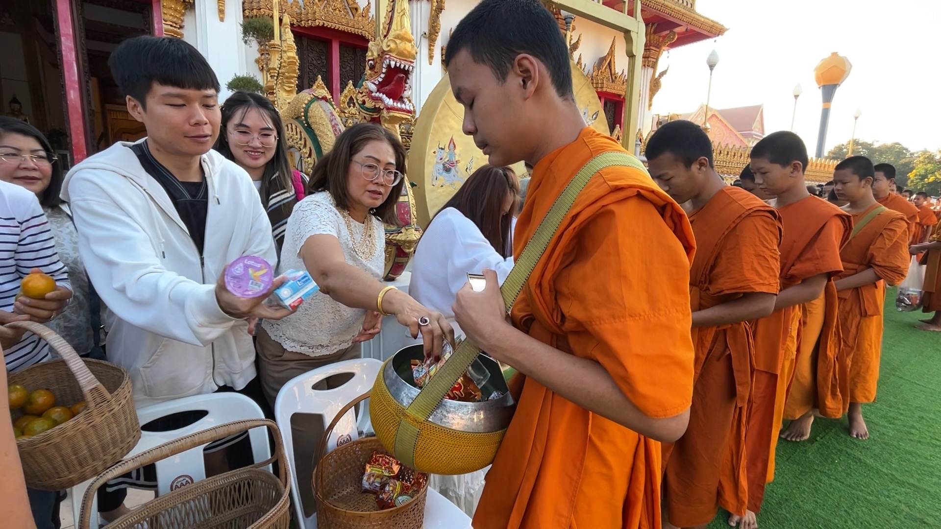 นักท่องเที่ยวไทย-เทศ ทำบุญตักบาตรเนื่องในวันขึ้นปีใหม่ 2569 เนืองแน่น ขณะที่วัดนำสิ่งของที่ได้ส่งต่อกองบุญให้กับเด็กยากไร้ ผู้ป่วยติดเตียง และเด็กพิการ