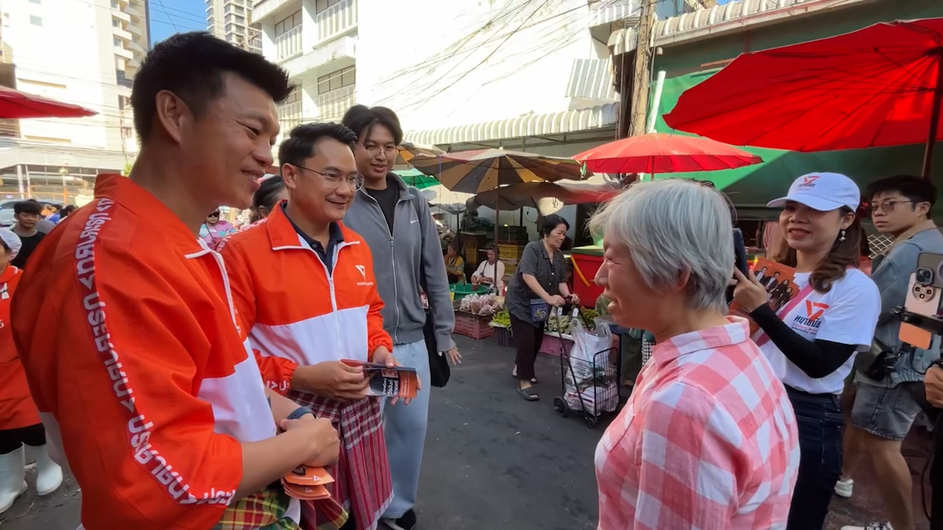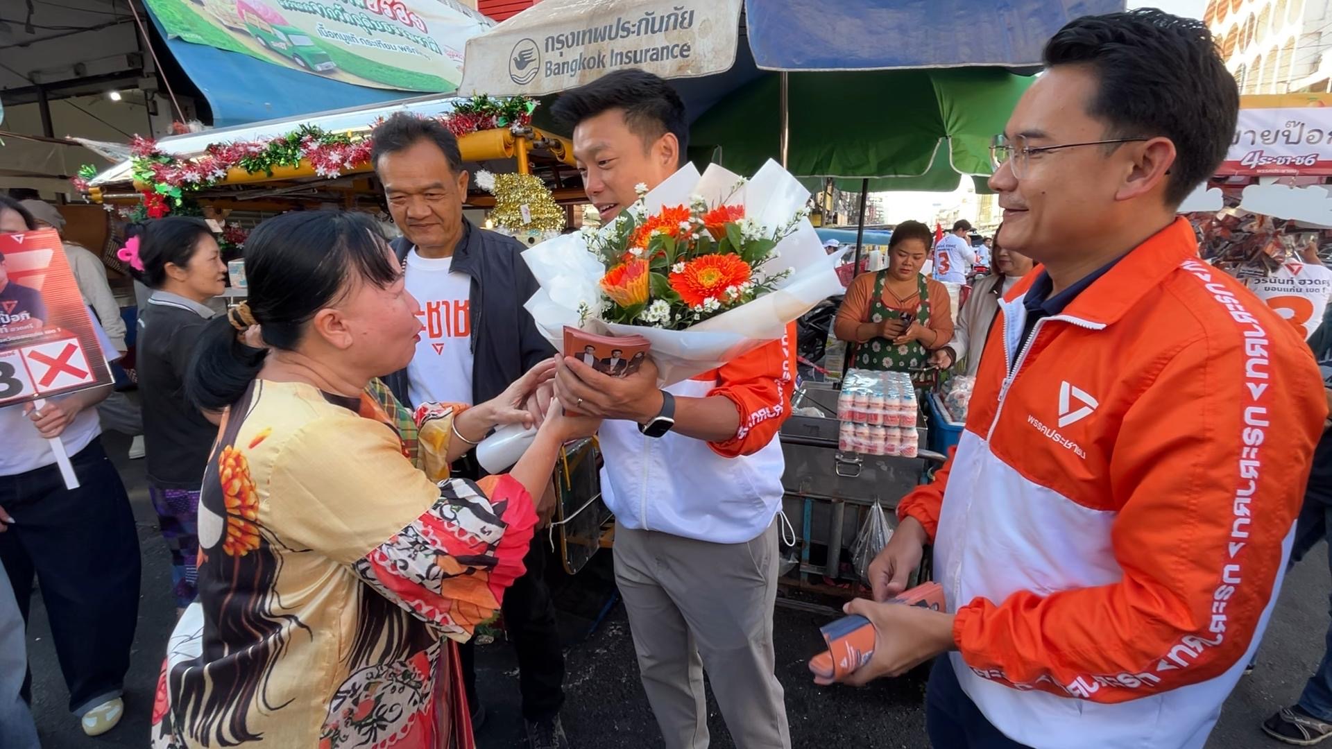 แม้จะมีเสียงติง แต่หลายคนยังคงให้กำลังใจ “เท้ง” อย่างล้นหลาม โดยเฉพาะที่ตลาดจอมพล มีชาวบ้านเข้ามาขอถ่ายภาพ เชียร์เสียงดัง บางคนถึงกับร้องไห้ด้วยความดีใจ พร้อมมอบดอกดาวเรือง พวงมาลัย และส้มให้เป็นกำลังใจ บางรายระบุว่า “เลือกพรรคส้มแน่นอน”