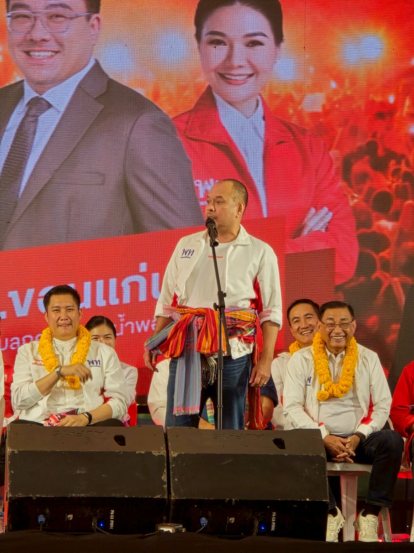 การปราศรัยครั้งนี้นำโดย นายจุลพันธ์ อมรวิวัฒน์ หัวหน้าพรรคเพื่อไทย และแคนดิเดตนายกรัฐมนตรี พรรคเพื่อไทย พร้อมด้วย นายณัฐวุฒิ ใสยเกื้อ ผู้อำนวยการครอบครัวเพื่อไทย นางสาวจิราพร สินธุไพร อดีตรัฐมนตรีประจำสำนักนายกรัฐมนตรี และนางสาวขัตติยา สวัสดิผล ผู้สมัครสมาชิกสภาผู้แทนราษฎร แบบบัญชีรายชื่อ ร่วมขึ้นเวทีท่ามกลางบรรยากาศคึกคัก