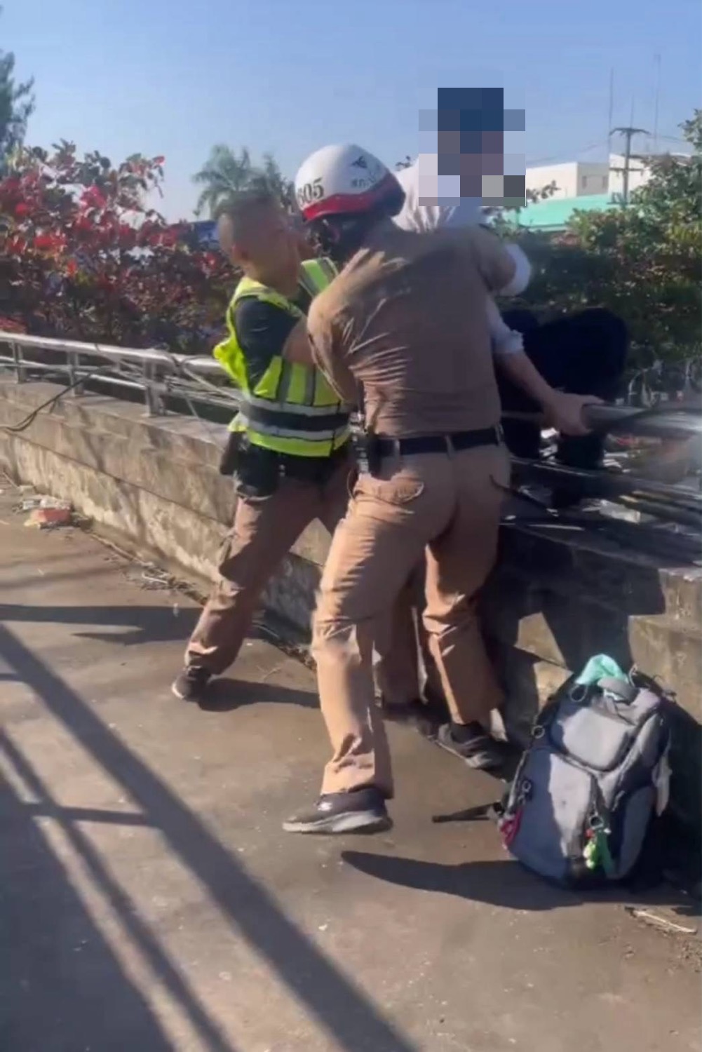 พ.ต.อ.ชุมพล บัวชุม ผกก.สภ.น้ำพอง กล่าวว่า จากกรณีเหตุการณ์เมื่อวันที่ 5 มกราคม 2568 เวลาประมาณ 15.50 น. เจ้าหน้าที่ตำรวจจราจร สถานีตำรวจภูธรน้ำพอง จังหวัดขอนแก่น ได้เข้าช่วยเหลือประชาชนซึ่งอยู่ในภาวะเครียด บริเวณสะพานลอยในพื้นที่รับผิดชอบ โดยเจ้าหน้าที่ได้ปฏิบัติหน้าที่ด้วยความกล้าหาญ เสียสละ อดทน และมีไหวพริบในการแก้ไขสถานการณ์ ใช้การสื่อสารอย่างสุภาพ ใจเย็น และเหมาะสม จนสามารถควบคุมสถานการณ์ไว้ได้อย่างปลอดภัย ก่อนนำผู้ประสบเหตุส่งเข้ารับการดูแลจากแพทย์ ณ โรงพยาบาล และประสานญาติให้รับกลับไปดูแลต่อเป็นที่เรียบร้อยแล้วนั้น