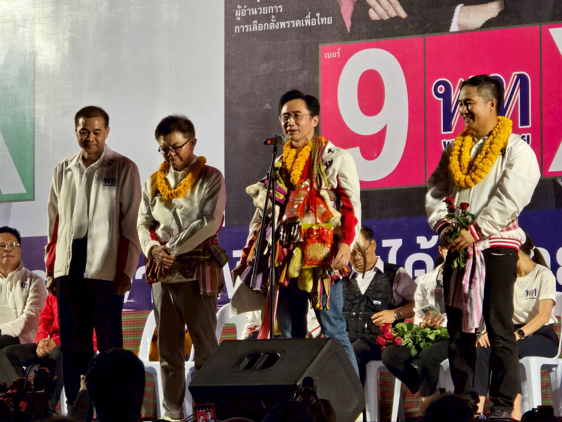 ขณะที่ นายณัฐวุฒิ ใสยเกื้อ ผู้ช่วยหาเสียงพรรคเพื่อไทย กล่าวว่า ได้เดินทางช่วยผู้สมัคร ส.ส.ของพรรคเพื่อไทย หาเสียงกับประชาชนในพื้นที่จังหวัดร้อยเอ็ด ยโสธร กาฬสินธุ์ และจังหวัดขอนแก่น เพื่อผลักดันให้พรรคเพื่อไทยกลับมาเป็นผู้นำรัฐบาล โดยมี ศ.ดร.ยศชนัน วงศ์สวัสดิ์ เป็นนายกรัฐมนตรี และจะดำเนินนโยบายของพรรคเพื่อแก้ไขปัญหาความเดือดร้อนของประชาชน ซึ่งชาวขอนแก่นน่าจะเห็นความสำเร็จจากนโยบายของพรรคเพื่อไทยในสมัยนายทักษิณ ชินวัตร เป็นนายกรัฐมนตรี ซึ่งมีนโยบายที่ประชาชนได้รับประโยชน์อย่างชัดเจน โดยเฉพาะโครงการ 30 บาท รักษาทุกโรค ที่ไม่มีใครกล้ายกเลิก และปัจจุบันยังสามารถใช้รักษาได้ในทุกโรงพยาบาล พร้อมเชิญชวนให้ประชาชนเลือกผู้สมัคร ส.ส.พรรคเพื่อไทย ในวันเลือกตั้งวันที่ 8 ก.พ. 2569 เพื่อให้ ศ.ดร.ยศชนัน สานต่อนโยบายของพรรค