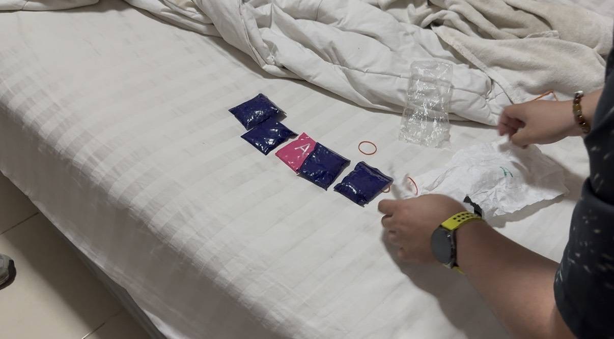 ผลการตรวจค้นพบของกลางเป็นยาเสพติดให้โทษประเภท 1 (ยาบ้า) จำนวนประมาณ 1,980 เม็ด โทรศัพท์มือถือ 2 เครื่อง และกระเป๋าพร้อมอุปกรณ์ที่เกี่ยวข้องกับการกระทำผิด จากการสอบสวน ผู้ต้องหาให้การรับสารภาพว่ายาบ้าดังกล่าวเป็นของตนเอง และซุกซ่อนไว้ภายในห้องพักโรงแรม