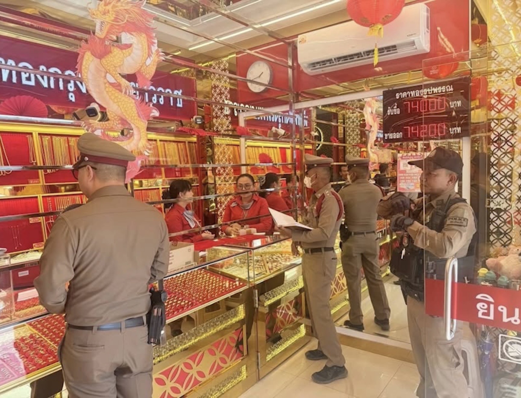 จากการตรวจสอบในที่เกิดเหตุ เบื้องต้นทราบว่าคนร้ายเป็นชาย 1 ราย ใช้รถจักรยานยนต์เป็นพาหนะ บุกเข้าไปก่อเหตุภายในร้านทอง ก่อนกวาดเอาทองคำรูปพรรณ น้ำหนักรวมประมาณ 26 บาท แล้วขับขี่รถจักรยานยนต์หลบหนีออกจากพื้นที่อย่างรวดเร็ว