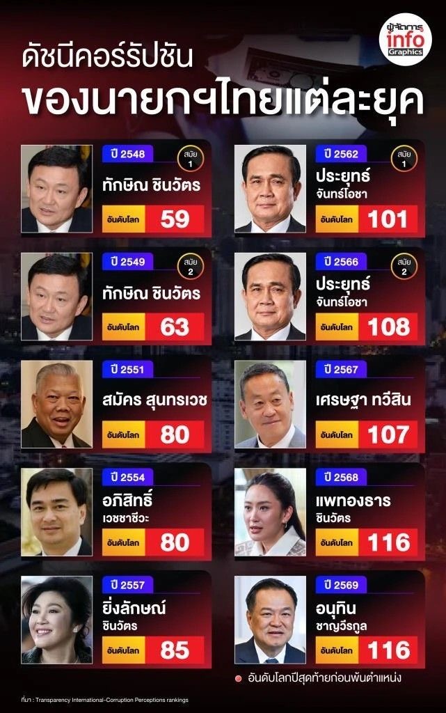 จากการจัดอันดับ ดัชนีภาพลักษณ์การคอร์รัปชัน หรือฝรั่งเขาเรียกว่า ดัชนี CPI-Corruption Perceptions Index เมื่อ ต้นเดือนกุมภาพันธ์ 2569 ที่ผ่านมา