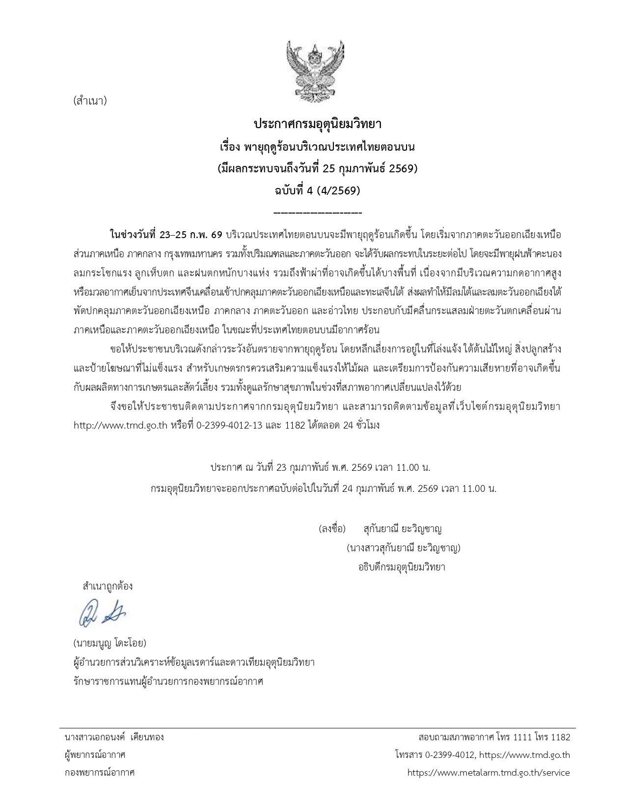 āļāļĢāļ°āļāļēāļĻ āļ āļ§āļąāļāļāļĩāđ ðïļ 23 āļāļļāļĄāļ āļēāļāļąāļāļāđ āļ.āļĻ. 2569 āđāļ§āļĨāļē 11.00 āļ. āđāļĨāļ°āļāļĢāļĄāļāļļāļāļļāļāļīāļĒāļĄāļ§āļīāļāļĒāļēāļāļ°āļāļāļāļāļĢāļ°āļāļēāļĻāļāļāļąāļāļāđāļāđāļāđāļāļ§āļąāļāļāļĩāđ ðïļ 24 āļāļļāļĄāļ āļēāļāļąāļāļāđ āļ.āļĻ. 2569 āđāļ§āļĨāļē 11.00 āļ.