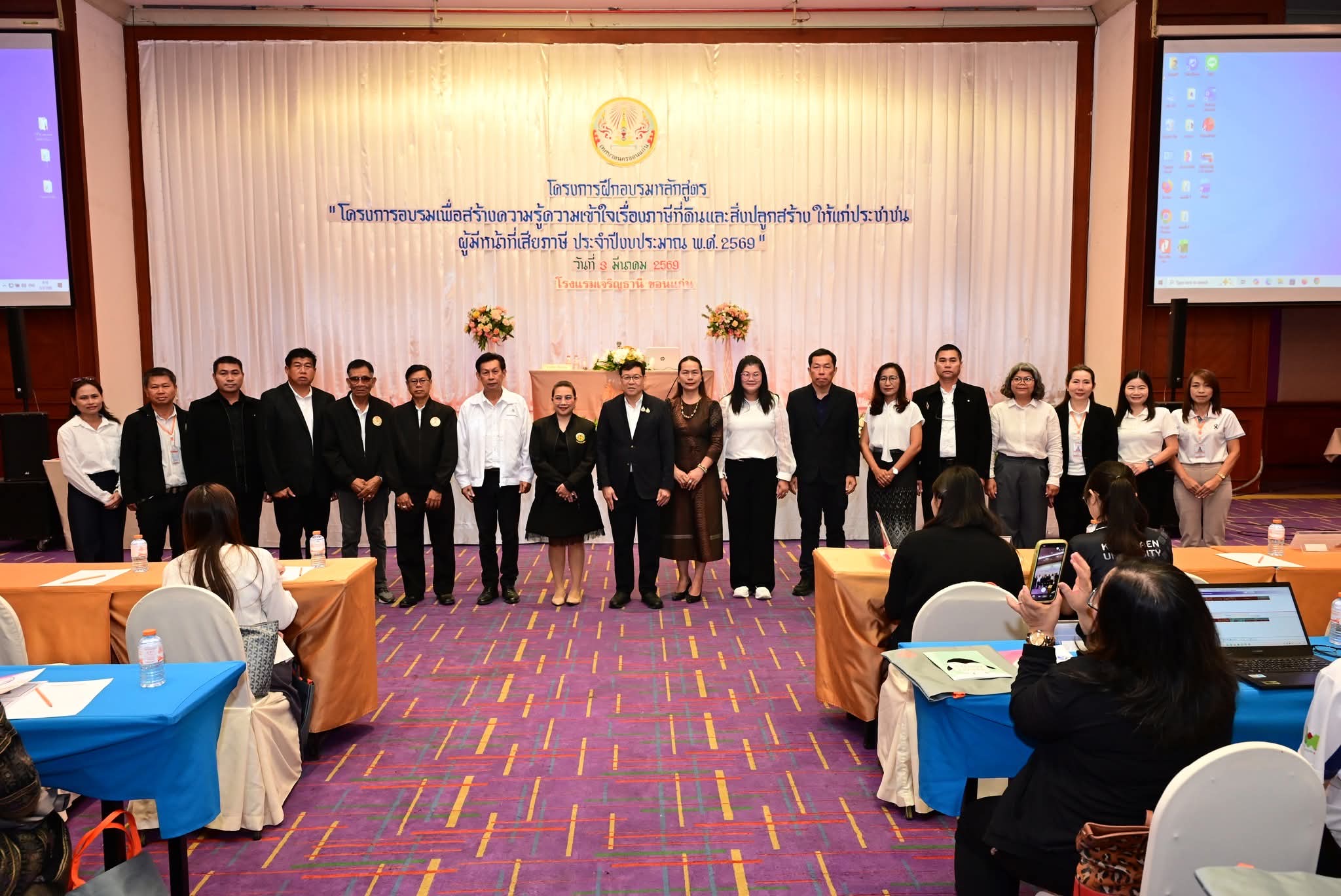 เมื่อเวลา 11.00 น. วันที่ 3 มีนาคม 2569 ที่ห้องศรีจันทร์ บอลรูม ชั้น 4 โรงแรมเจริญธานี จังหวัดขอนแก่น เทศบาลนครขอนแก่น นายประสิทธิ์ ทองแท่งไทย นายกเทศมนตรีนครขอนแก่น เป็นประธานเปิดโครงการอบรมเพื่อสร้างความรู้ความเข้าใจเรื่องภาษีที่ดินและสิ่งปลูกสร้างให้แก่ประชาชนผู้มีหน้าที่ต้องชำระภาษี ประจำปีงบประมาณ พ.ศ. 2569 โดยมีคณะผู้บริหาร สมาชิกสภา หัวหน้าส่วนราชการ นำประชาชนผู้มีหน้าที่ต้องชำระภาษีเข้าร่วมรับการอบรมกว่า 500 คน