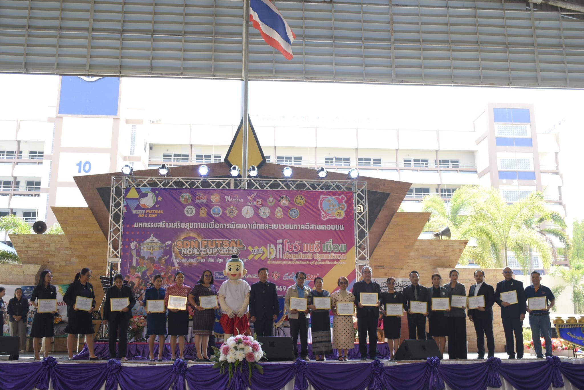 ขณะที่นายพันธ์เทพ เสาโกศล รองผู้ว่าราชการจังหวัดขอนแก่น กล่าวว่า การจัดงานครั้งนี้สะท้อนพลังความร่วมมือของหลายภาคส่วนในการขับเคลื่อนการพัฒนาเด็กและเยาวชน ผ่านโครงการปลูกพลังบวกเพื่อสร้างจิตสำนึกภูมิคุ้มกันปัจจัยเสี่ยงเหล้าและบุหรี่สำหรับเด็กปฐมวัย ควบคู่กับการแข่งขัน SDN FUTSAL NO-L CUP 2026 ภายใต้แนวคิด “เพื่อนกันมันส์โนแอล ไม่ดื่ม ไม่สูบ ไม่เสพ ไม่พนัน” ซึ่งใช้กีฬาเป็นพื้นที่สร้างสรรค์ให้เยาวชนใช้เวลาว่างอย่างเกิดประโยชน์ และปลูกฝังค่านิยมการใช้ชีวิตที่ห่างไกลพฤติกรรมเสี่ยง