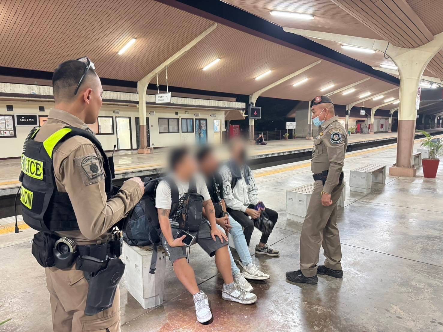 เมื่อเวลา 13.30 น. วันที่ 10 เม.ย. 2569 ศูนย์ป้องกันปราบปรามอาชญากรรมบนขบวนรถไฟ (ศปรฟ.บช.ก.) นำโดย พ.ต.ท.รัฐนันท์ ภูชะล้ำ สว.ฯ รอง หน.ชป.2 พร้อมด้วย พ.ต.ท.ณัฐดนัย ศรีแข่ไตร รอง ผกก.3 บก.ป., พ.ต.ต.เอกสิทธิ์ อินทร์โท่โล่ สว.กก.3 บก.ป., พ.ต.ท.กฤษฎ์ ศรีหาบุญทัน รอง ผกก.4 บก.ทล. (ขอนแก่น) และ พ.ต.ท.บดินทร์ ชูเฉลิม สวญ.ส.ทล.2 กก.4 ร่วมกันจับกุม ชาวสัญชาติมาเลเซีย จำนวน 3 ราย