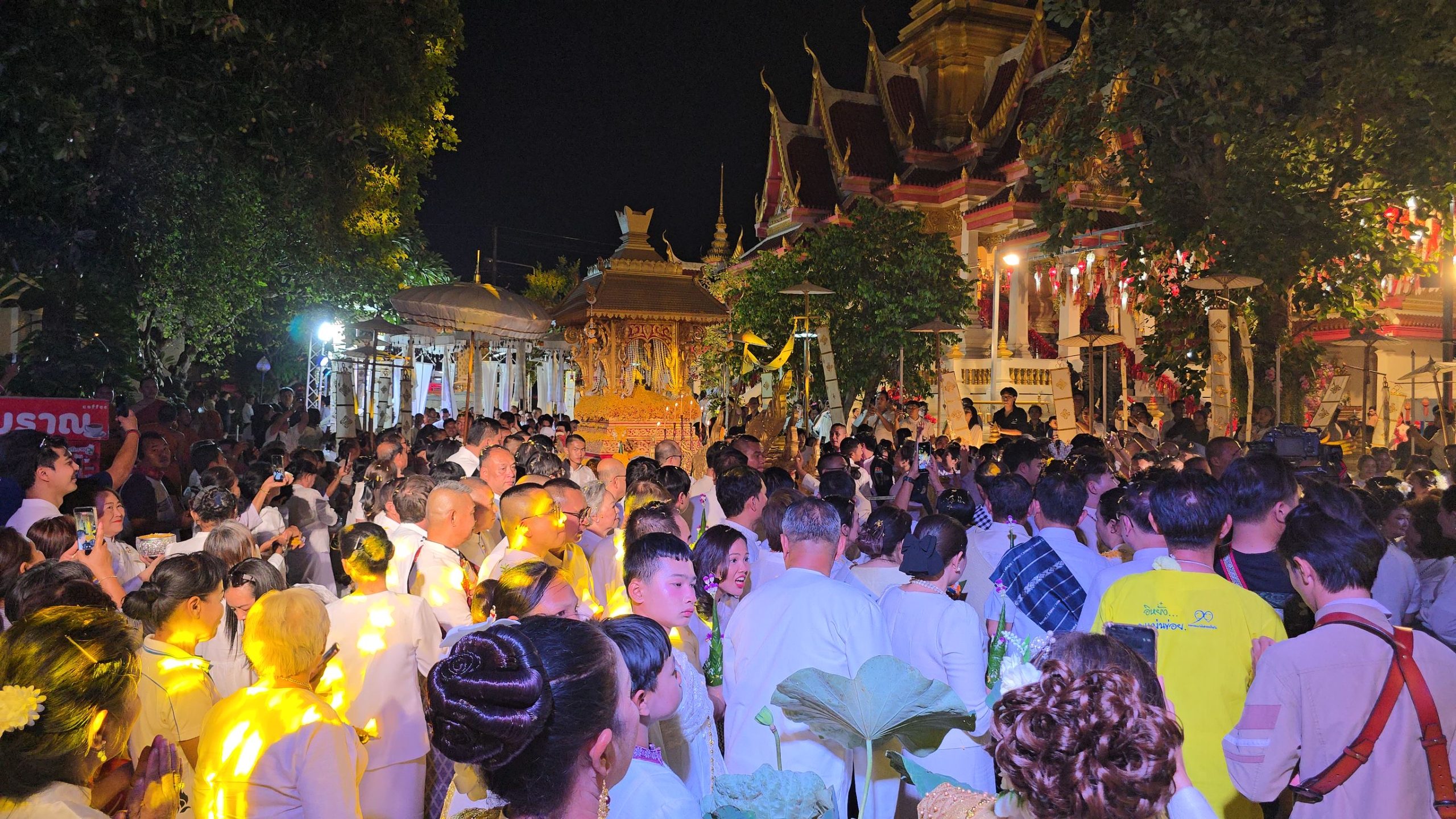 ต่อมาเมื่อขบวนเคลื่อนเข้าสู่เขตวัดธาตุ พระอารามหลวง ในเวลา 20.00 น. ชาวขอนแก่นได้ร่วมกันเคลื่อนขบวนเวียนประทักษิณรอบพระอุโบสถ 3 รอบ โดยมีพระสงฆ์ 9 รูป เจริญบทจุลชัยปกรณ์และเจริญชัยมงคลคาถา เจ้าพนักงานประโคมกลองแลง ลั่นฆ้อง และเป่าแตรสังข์ ท่ามกลางพุทธศาสนิกชนที่นั่งรอบอุโบสถร่วมโปรยดอกไม้รับขบวนราชรถพระศรีสัตนาคนหุต เมื่อครบสามรอบ ขบวนแห่จอดพักด้านทิศตะวันออกของพระอุโบสถ ก่อนที่นายขจรเกียรติ รักพานิชมณี ผู้ว่าราชการจังหวัดขอนแก่น และ รศ.นพ.ชาญชัย พานทองวิริยะกุล อธิการบดีมหาวิทยาลัยขอนแก่น จะร่วมอัญเชิญพระศรีสัตนาคนหุตขึ้นประดิษฐานภายในพระอุโบสถ จุดเทียนบูชาพระรัตนตรัย และประกอบพิธีบายศรีสู่ขวัญ ซึ่งถือเป็นกิจกรรมมงคลสำคัญก่อนเริ่มต้นเทศกาลสงกรานต์ของชาวขอนแก่นในทุกปี