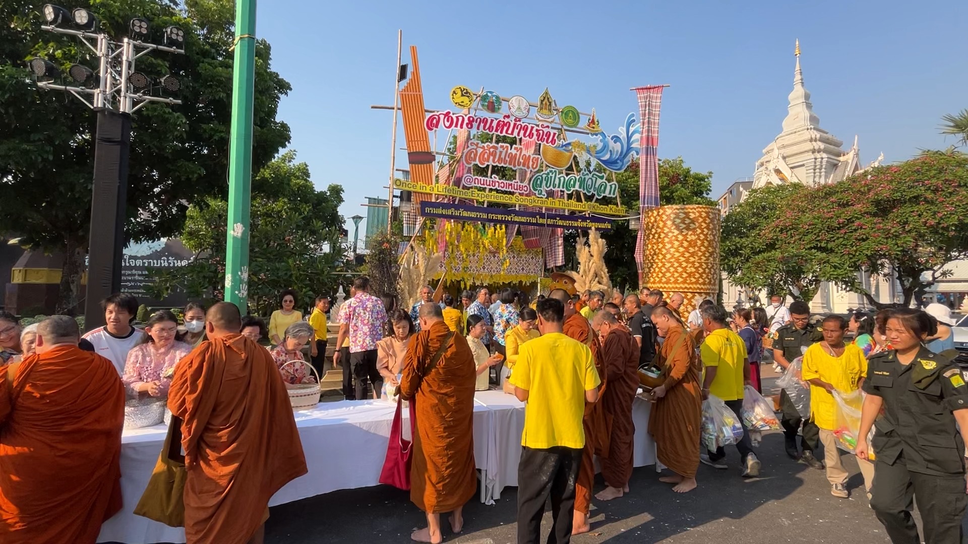 เมื่อเวลา 07.00 น. วันที่ 13 เม.ย. 2569 ที่ศาลหลักเมืองขอนแก่น นายขจรเกียรติ รักพานิชมณี ผู้ว่าราชการจังหวัดขอนแก่น พร้อมด้วยนายประสิทธิ์ ทองแท่งไทย นายกเทศมนตรีนครขอนแก่น นำหัวหน้าส่วนราชการ ประชาชนในเขตเทศบาลนครขอนแก่น รวมถึงนักท่องเที่ยว เข้าร่วมทำบุญตักบาตรพระสงฆ์และสามเณรจำนวน 87 รูป ในงานประเพณีสุดยอดสงกรานต์อีสาน เทศกาลดอกคูนเสียงแคน และถนนข้าวเหนียว ประจำปี 2569