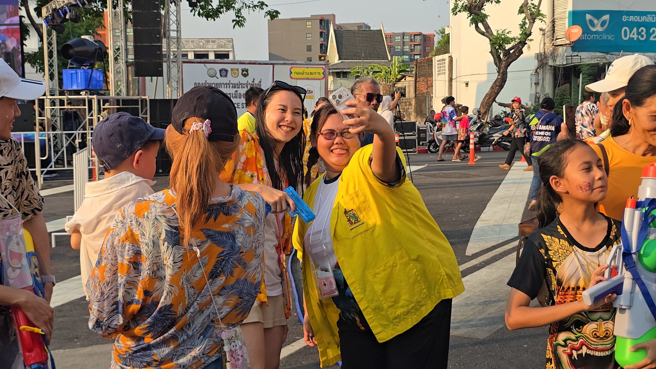เมื่อเวลา 17.30 น. วันที่ 13 เม.ย. 2569 รศ.วีระยุทธ กาญจน์ชูฉัตร เดินทางมาพร้อมกับนางสาวรักชนก ศรีนอก หรือ “ไอซ์ รักชนก” ส.ส.แบบบัญชีรายชื่อ พรรคประชาชน พร้อมด้วย ส.ส.ขอนแก่น เขต 1 และเขต 2 รวมทั้งจากพื้นที่ใกล้เคียง ร่วมเล่นน้ำสงกรานต์ที่ถนนข้าวเหนียวขอนแก่น ท่ามกลางการต้อนรับและความสนใจจากนักท่องเที่ยวที่มาเที่ยวชมงานอย่างมาก ทั้งร่วมขอประแป้งและถ่ายภาพเป็นที่ระลึก ก่อนขึ้นเวทีรำวงย้อนยุคร่วมรำวงกับชาวชุมชนและนักท่องเที่ยวอย่างสนุกสนาน