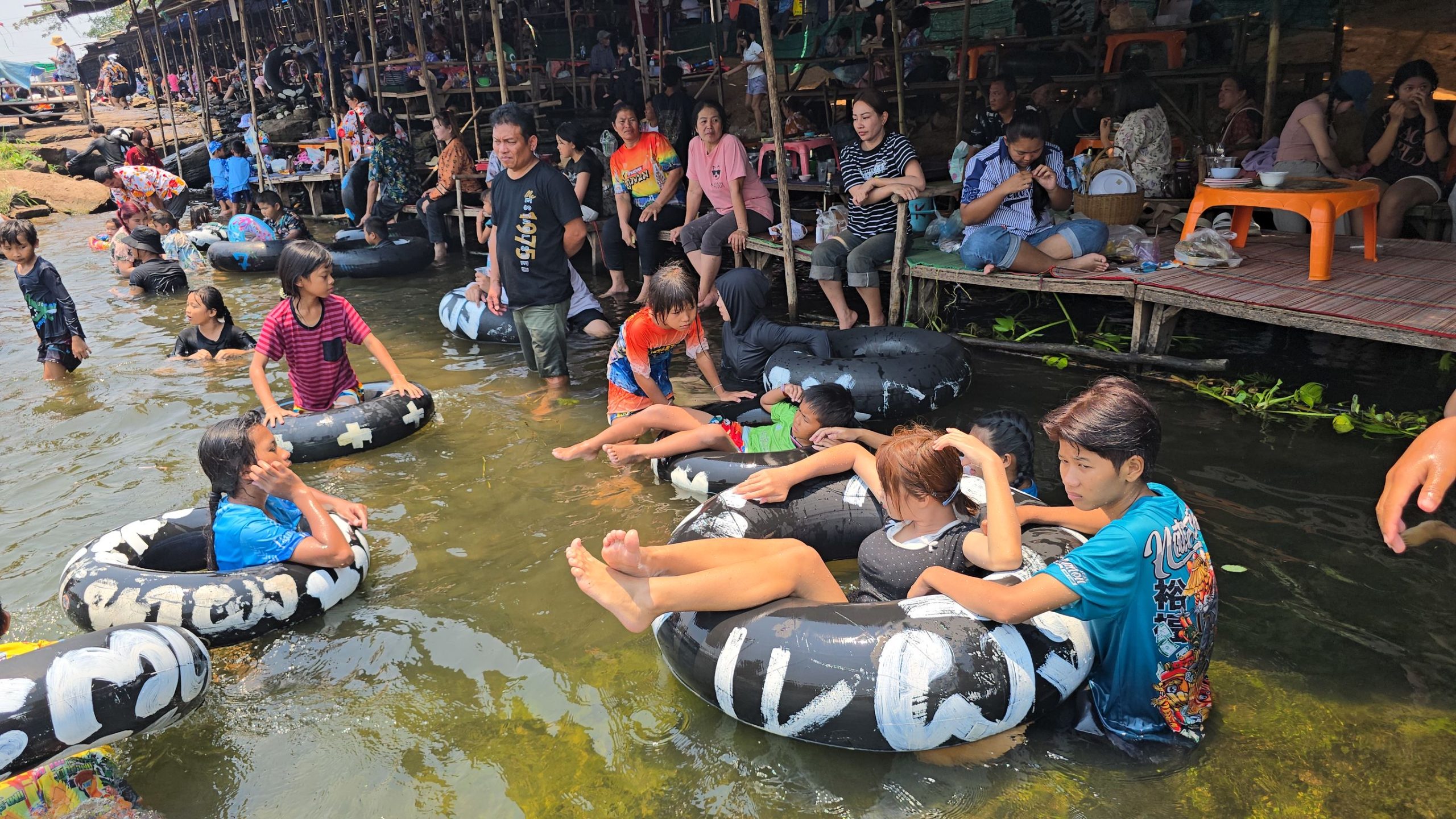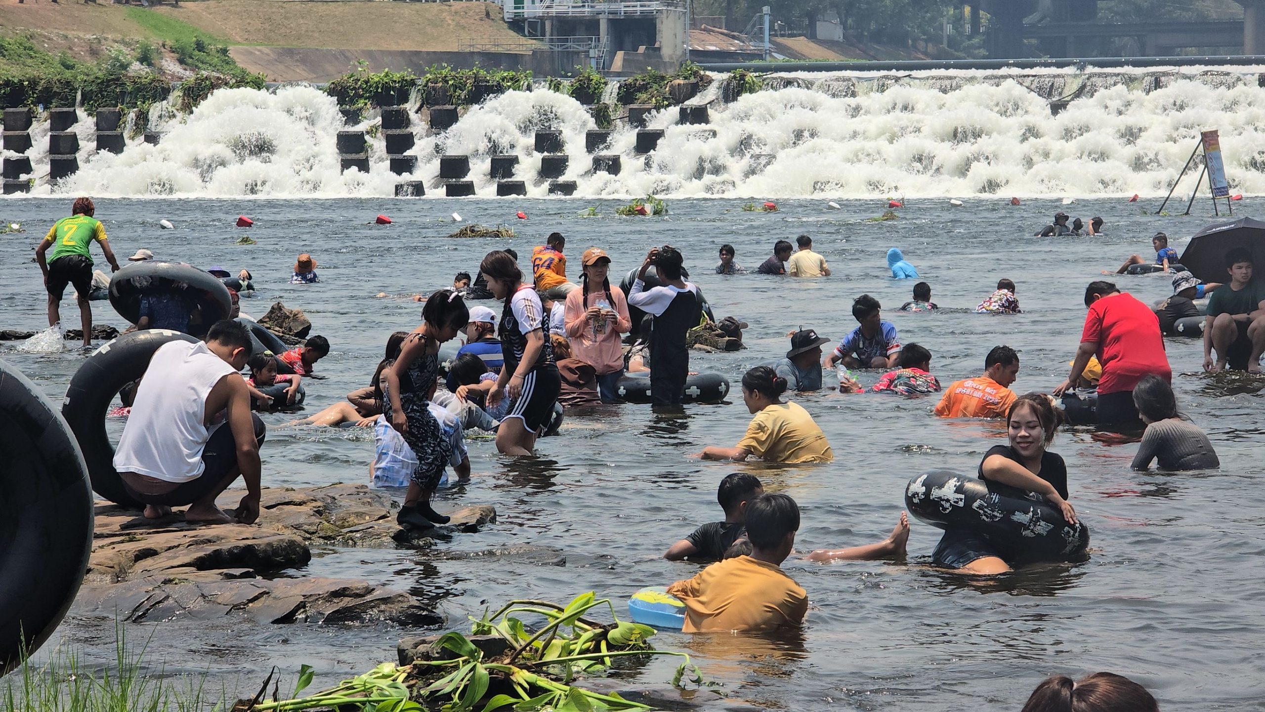 จากการลงพื้นที่พบว่า ในปีนี้มีประชาชนและนักท่องเที่ยวจำนวนมากพากันมาลงเล่นน้ำในโซนที่เจ้าหน้าที่จัดสรรไว้โดยเฉพาะ เพื่อความปลอดภัยจากกระแสน้ำเชี่ยวที่ไหลลงสู่ลำน้ำพอง โดยมีทั้งเด็ก วัยรุ่น คู่รักหนุ่มสาว ตลอดจนประชาชนที่เดินทางมาเป็นครอบครัว ต่างนำห่วงยางมาลงเล่นน้ำและพักผ่อนท่ามกลางบรรยากาศสนุกสนาน