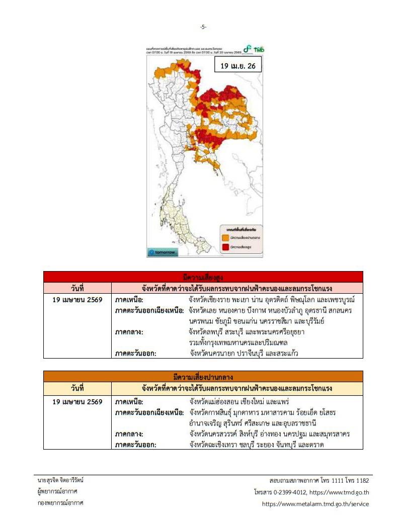 ประชาชนสามารถติดตามข้อมูลสภาพอากาศเพิ่มเติมได้ที่เว็บไซต์กรมอุตุนิยมวิทยา http://www.tmd.go.th และ https://www.metalarm.tmd.go.th/service หรือสอบถามสภาพอากาศ 📱 โทร 1111, 📱 โทร 1182 และ 📱 โทรสาร 0-2399-4012 ถึง 13 ได้ตลอด 24 ชั่วโมง